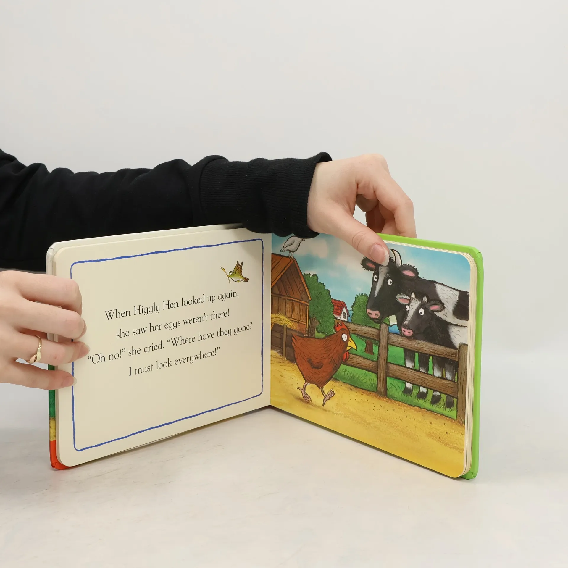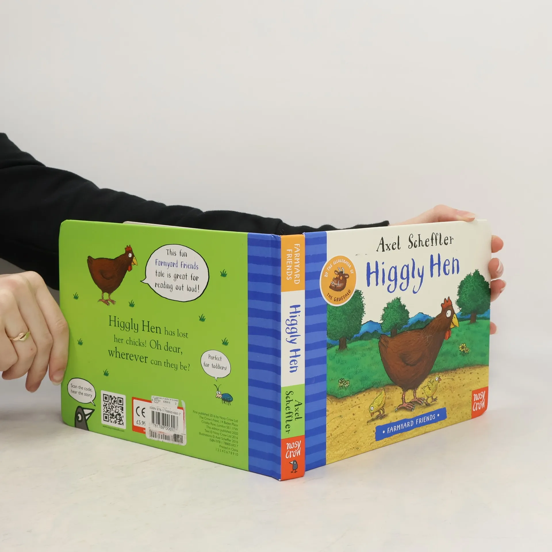 A friendly, rhyming farmyard tale from bestselling, award-winning illustrator Axel Scheffler Higgly Hen has lost her chicks! Oh dear, wherever can they be? Follow Higgly around the farmyard as she searches for her missing chicks. Other titles in the series Gobbly Goat, Cuddly Cow and Portly Pig Take a trip to the farm with these new look cased board books featuring much loved artwork from illustrator of The Gruffalo and the Pip and Posy series. With simple, yet funny texts that are perfect for reading aloud.