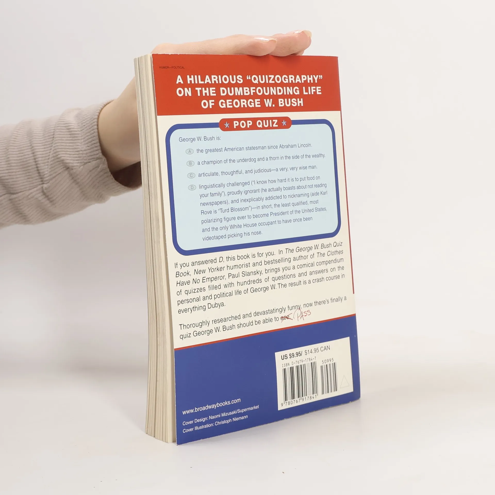 A Hilarious “Quizography” on the Dumbfounding Life of George W. BushPop QuizGeorge W. Bush (A) the greatest American statesman since Abraham Lincoln.(B) a champion of the underdog and a thorn in the side of the wealthy.(C) articulate, thoughtful, and judicious—a very, very wise man.(D) linguistically challenged (“I know how hard it is to put food on your family”), proudly ignorant (he actually boasts about not reading newspapers), and inexplicably addicted to nicknaming (aide Karl Rove is “Turd Blossom”)—in short, the least qualified, most polarizing figure ever to be appointed President of the United States, and the only White House occupant to have once been videotaped picking his nose.If you answered D , this book is for you. In The George W. Bush Quiz Book , New Yorker humorist and bestselling author of The Clothes Have No Emperor , Paul Slansky, brings you a comical compendium of quizzes filled with hundreds of questions and answers on the personal and political life of George W. The result is a crash course in everything Dubya.Thoroughly researched and devastatingly funny, now there’s finally a quiz George W. Bush should be able to ace (pass).