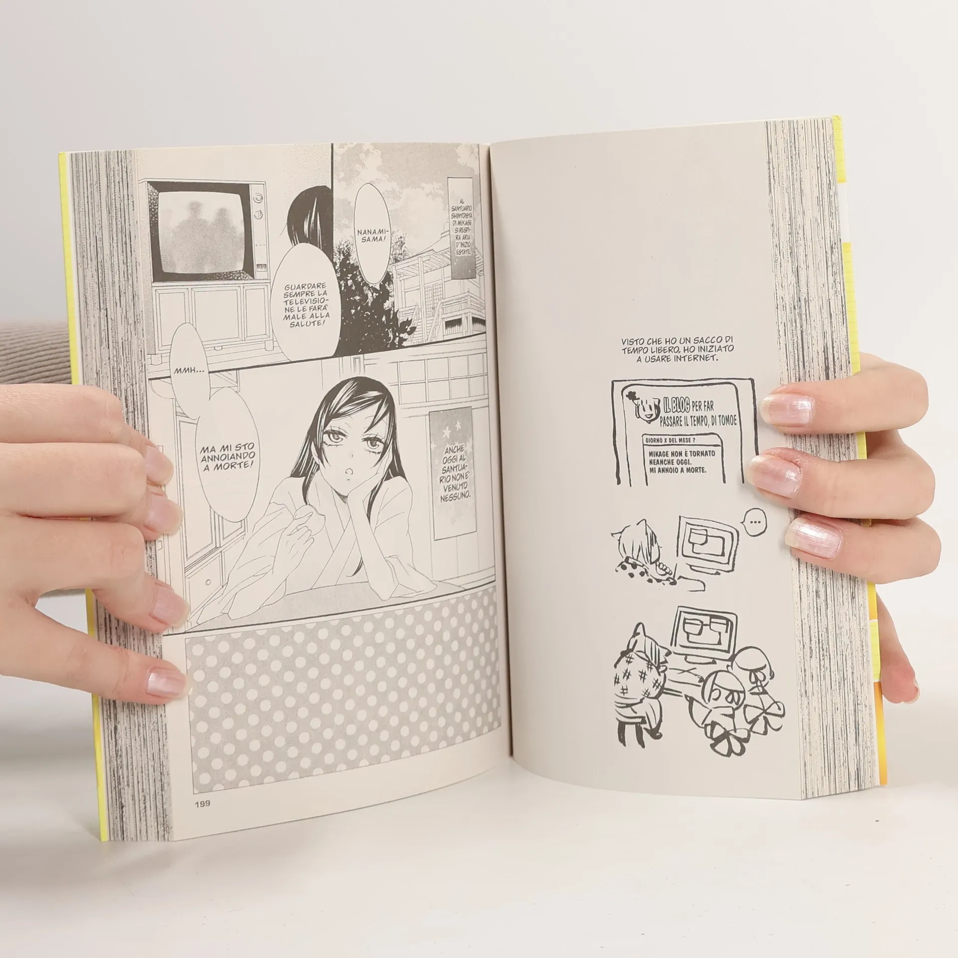 Un bel giorno, tornando a casa, Nanami Momozono trova una lettera in cui il padre le dice che è andato via e che è inutile cercarlo. Pochi istanti dopo suonano alla porta alcuni uomini che, a causa di debiti mai pagati, le portano via tutto quello che ha, casa compresa. Ritrovatasi all’improvviso in mezzo a una strada, Nanami non sa proprio che fare, ma in quel momento compare uno strano personaggio che si offre di ospitarla... Peccato che casa sua sia un vecchio e decrepito santuario shintoista e che lui sia… una divinità! La ragazza può restare a vivere lì, ma in cambio dovrà farsi carico del suo lavoro... Per lei inizierà una nuova, bizzarra esistenza sospesa tra due mondi, quello reale e quello degli spiriti!A grandissima richiesta torna una delle serie per ragazze più amate degli ultimi anni, in una nuova, meravigliosa pubblicazione che riunisce per ogni volume due numeri della vecchia edizione in corposi tomi con sovraccoperta. Assolutamente da non perdere!