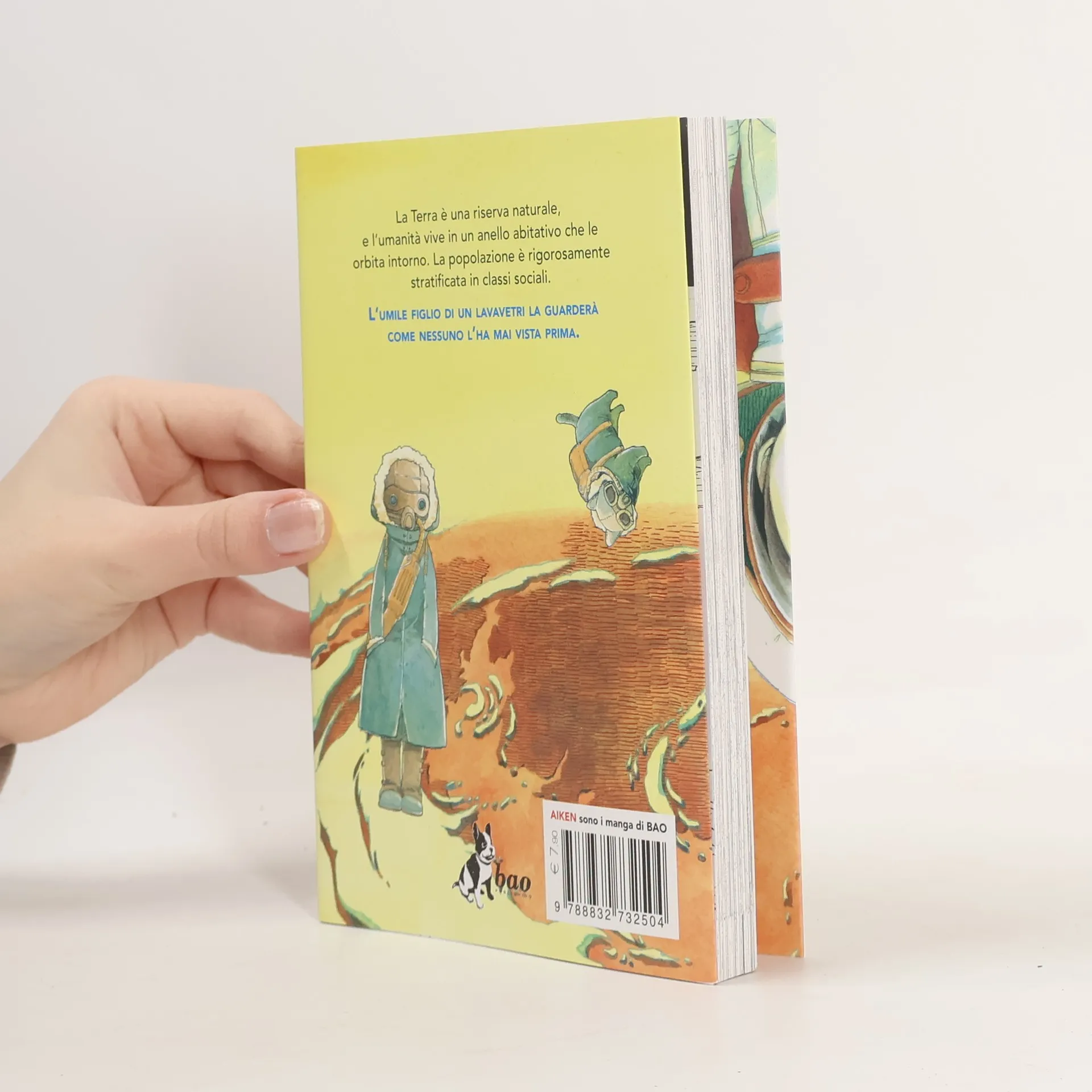 L’umanità vive su un anello che orbita intorno alla terra, a 35 chilometri dalla superficie terrestre. Il pianeta, dall’ecosistema compromesso, è ora una gigantesca oasi naturale. La popolazione dell’anello è strettamente divisa in classi sociali condizionati dall’abitare nel livello superiore, in quello medio o in quello inferiore. Chi se lo può permettere, di tanto in tanto paga dei lavavetri per vedere meglio lo spazio, e soprattutto la terra. Mitsu, fresco di licenza media, decide di diventare lavavetri, per onorare la memoria del padre, che un giorno è uscito per un incarico di pulizia e si è perso nello spazio… oppure è caduto sulla terra? Una storia delicata, originariamente uscita a puntate sulla prestigiosa rivista Ikki Magazine, definita da rapporti umani tratteggiati con rispetto e realismo da Hisae Iwaoka, una mangaka di razza, finora inedita in italia.