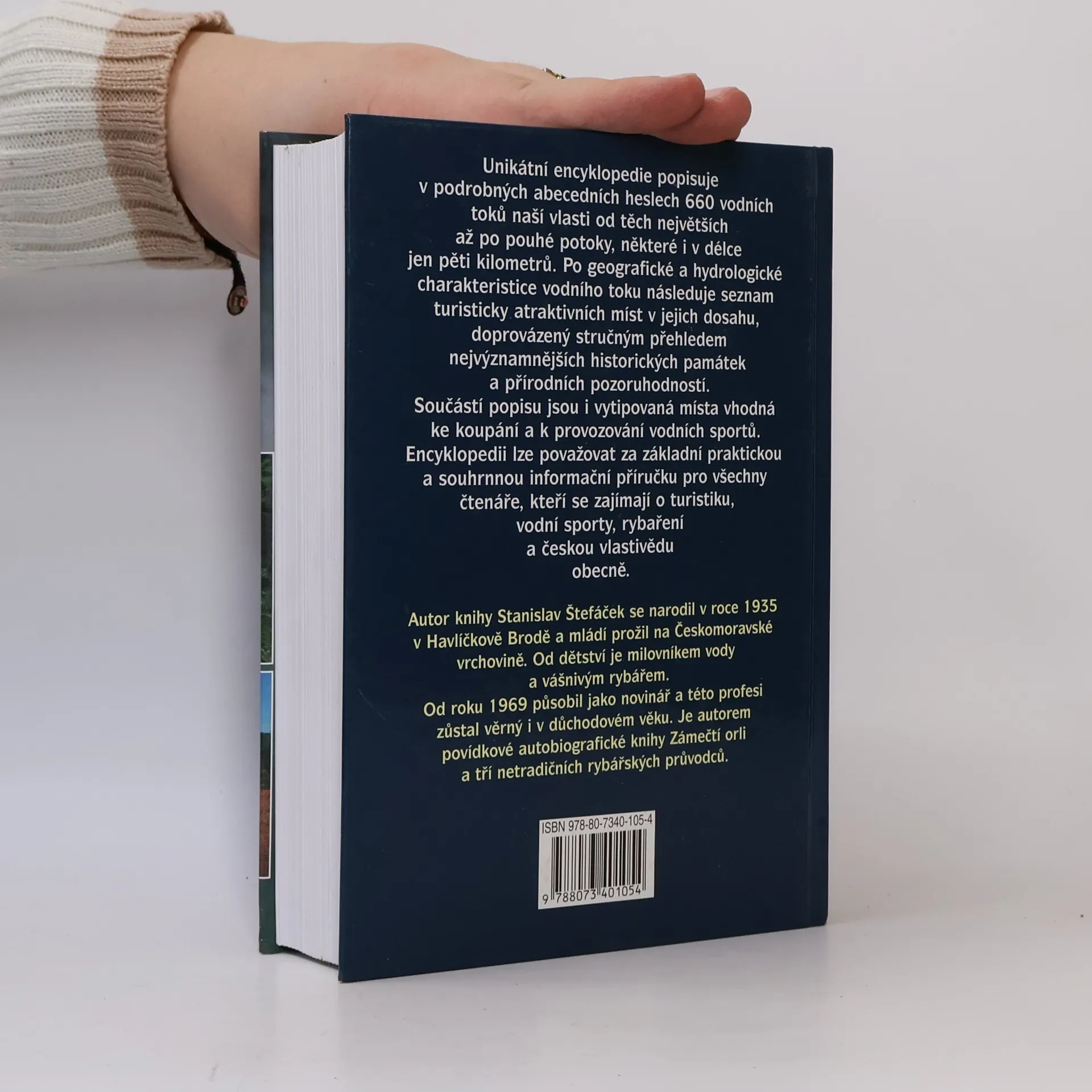 Unikátní encyklopedie popisuje na 740 stranách v podrobných abecedních heslech 660 vodních toků naší vlasti od těch největších až po pouhé potoky, některé i v délce jen pěti kilometrů. Po geografické a hydrologické charakteristice vodního toku následuje seznam turisticky atraktivních míst v jeho dosahu, doprovázený stručným přehledem nejvýznamnějších historických památek a přírodních pozoruhodností. Součástí popisu jsou i vytipovaná místa vhodná ke koupání a k provozování vodních sportů. Dozvíte se, kde řeka, říčka či potok pramení, kolika pohořími a kraji se prodere, než dospěje k místům, kde právě odpočíváte a jak ji v průběhu věků poznamenala ruka člověka. Encyklopedii lze považovat za základní, praktickou a souhrnnou informační příručku pro všechny čtenáře, kteří se zajímají o turistiku, vodní sporty, rybaření a českou vlastivědu obecně.