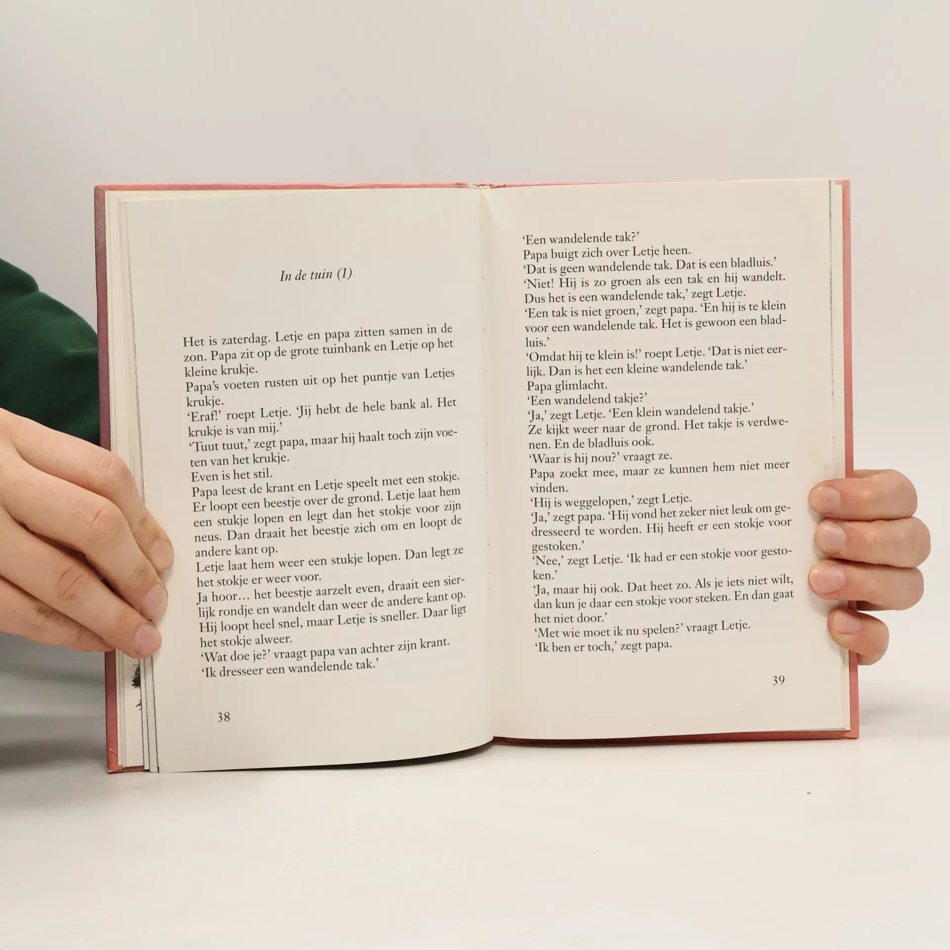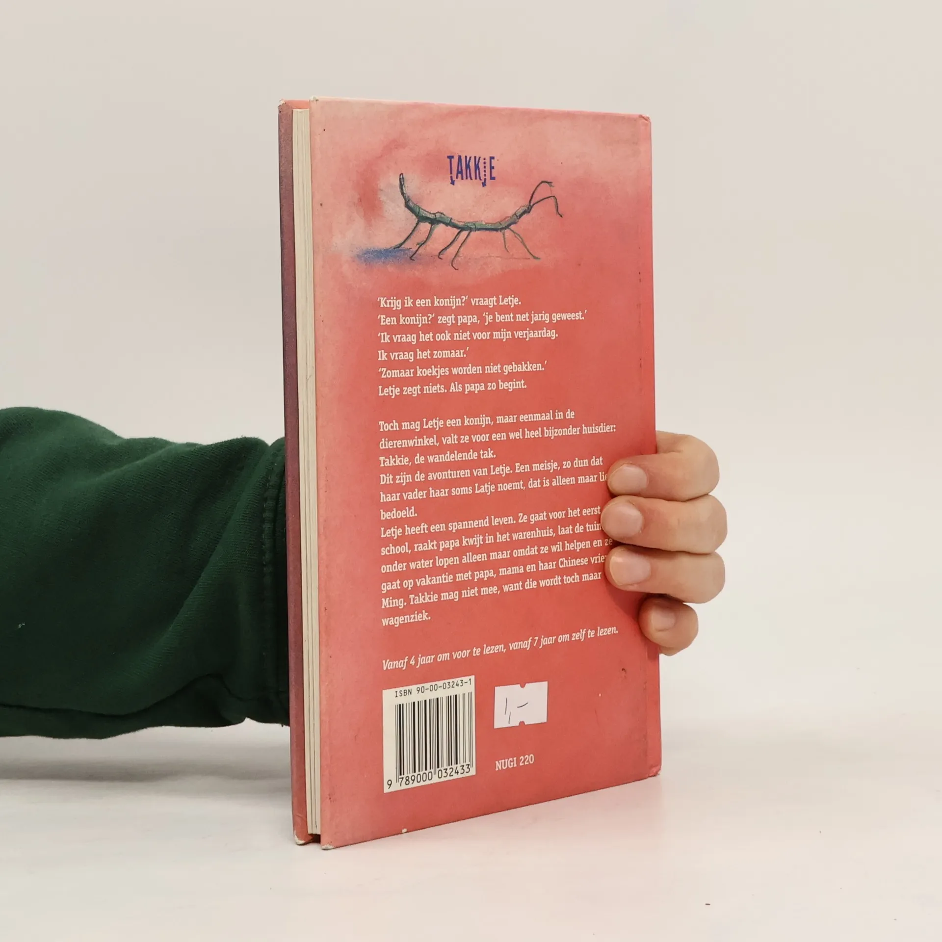 'Krijg ik een konijn?' vraagt Letje. 'Een konijn?' zegt papa, Je bent net jarig geweest 'Ik vraag het ook niet voor mijn verjaardag. Ik vraag het zomaar' 'Zomaar koekjes worden niet gebakken.' Letje zegt niets. Als papa zo begint. Toch mag Letje een konijn, maar eenmaal in de dierenwinkel, valt ze voor een wet heel bijzonder huisdier: Takkie, de wandelende tak. Dit zijn de avonturen van Letje. Een meisje, zo dun dat haar vader haar soms Latje noemt, dat is alleen maar lief bedoeld. Letje heeft een :pannend leven. Ze gaat voor het eerst naar school, raakt papa kwijt in het warenhuis, laat de tuin onder water lopen alleen maar omdat ze wil helpen en ze gaat op vakantie met papa, mama en haar Chinese vriendje Ming. Takkie mag niet mee, want die wordt toch maar wagenziek.