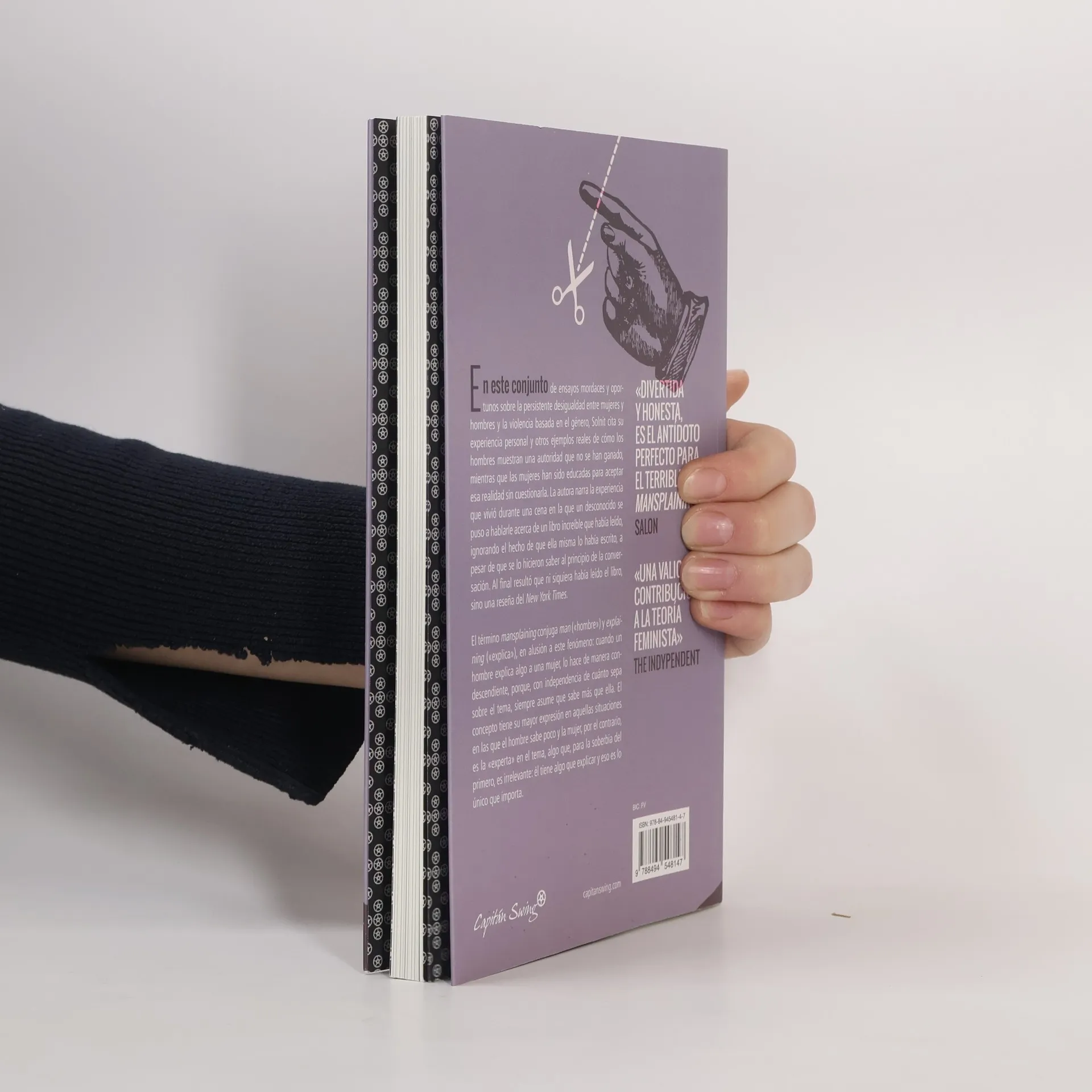 En este conjunto de ensayos mordaces y oportunos sobre la persistente desigualdad entre mujeres y hombres y la violencia basada en el género, Solnit cita su experiencia personal y otros ejemplos reales de cómo los hombres muestran una autoridad que no se han ganado, mientras que las mujeres han sido educadas para aceptar esa realidad sin cuestionarla. La autora narra la experiencia que vivió durante una cena en la que un desconocido se puso a hablarle acerca de un libro increíble que había leído, ignorando el hecho de que ella misma lo había escrito, a pesar de que se lo hicieron saber al principio de la conversación. Al final resultó que ni siquiera había leído el libro, sino una reseña del New York Times. El término mansplaining conjuga man («hombre») y explaining («explica»), en alusión a este fenómeno: cuando un hombre explica algo a una mujer, lo hace de manera condescendiente, porque, con independencia de cuánto sepa sobre el tema, siempre asume que sabe más que ella. El concepto tiene su mayor expresión en aquellas situaciones en las que el hombre sabe poco y la mujer, por el contrario, es la «experta» en el tema, algo que, para la soberbia del primero, es irrelevante: él tiene algo que explicar y eso es lo único que importa.