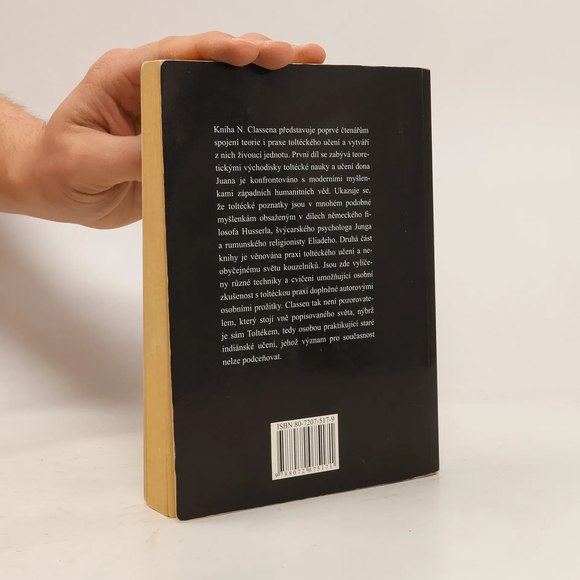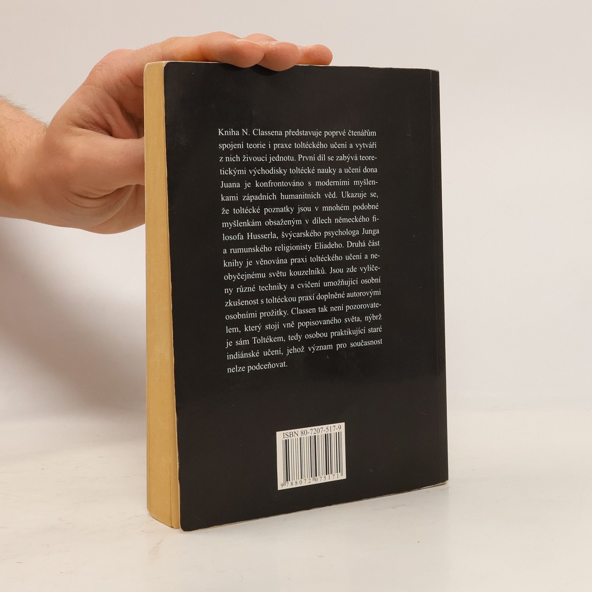 Podtitul: Carlos Castaneda a filosofie dona Juana Kniha N. Classena představuje poprvé čtenářům spojení teorie i praxe toltéckého učení a vytváří z nich živoucí jednotu. První díl se zabývá teoretickými východisky toltécké nauky a učení dona Juana je konfrontováno s moderními myšlenkami západních humanitních věd. Ukazuje se, že toltécké poznatky jsou v mnohém podobné myšlenkám obsaženým v dílech německého filosofa Husserla, švýcarského psychologa Junga a rumunského religionisty Eliadeho. Druhá část knihy je věnována praxi toltéckého učení a neobyčejnému světu kouzelníků. Jsou zde vylíčeny různé techniky a cvičení umožňující osobní zkušenost s toltéckou praxí doplněné autorovými osobními prožitky. Claßen tedy není pozorovatelem, který stojí vně popisovaného světa, nýbrž je sám Toltékem, tedy osobou praktikující staré indiánské učení, jehož význam pro současnost nelze podceňovat.