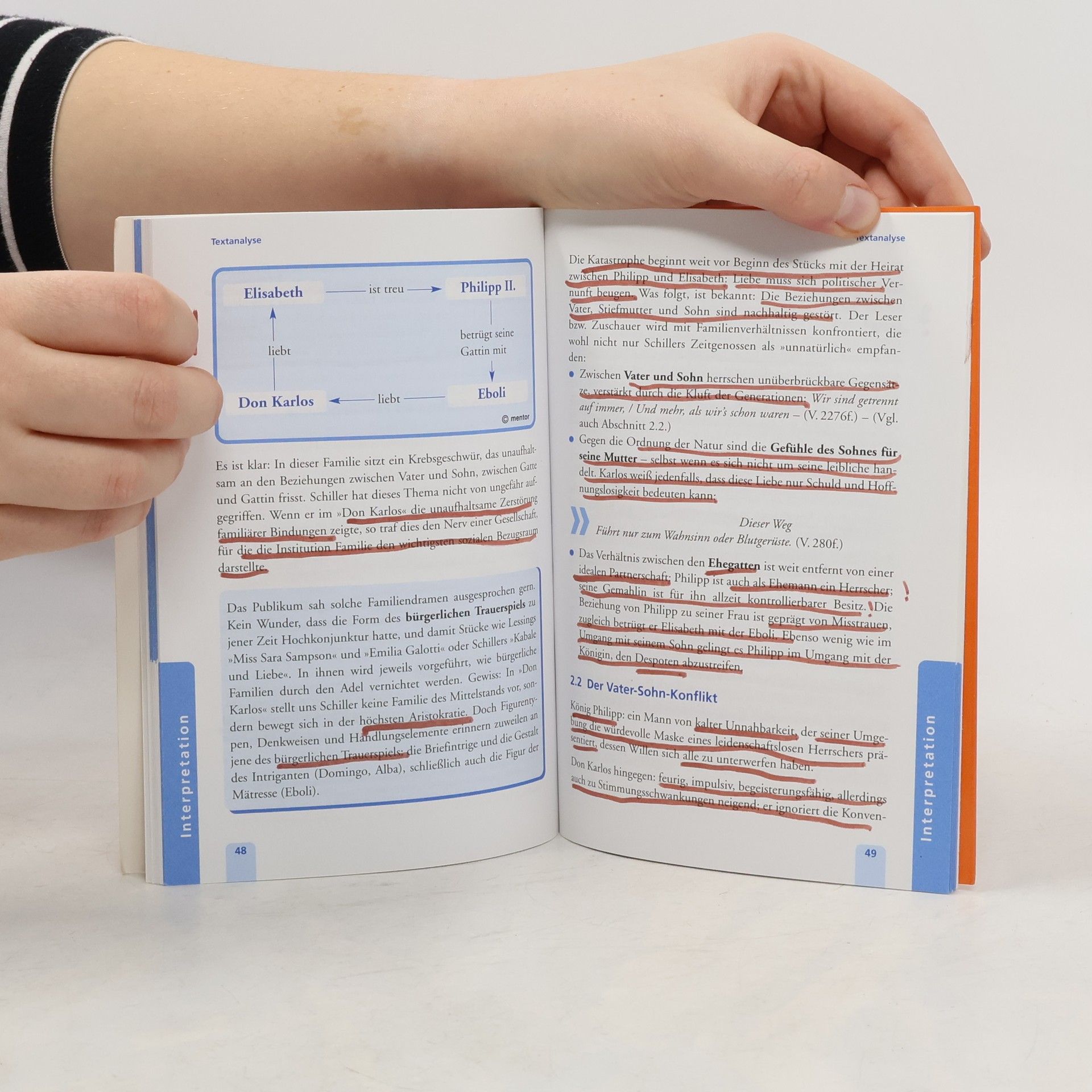 Schülergerecht knappe Interpretationshilfe zu Schillers bekanntem historischen Drama (1787).