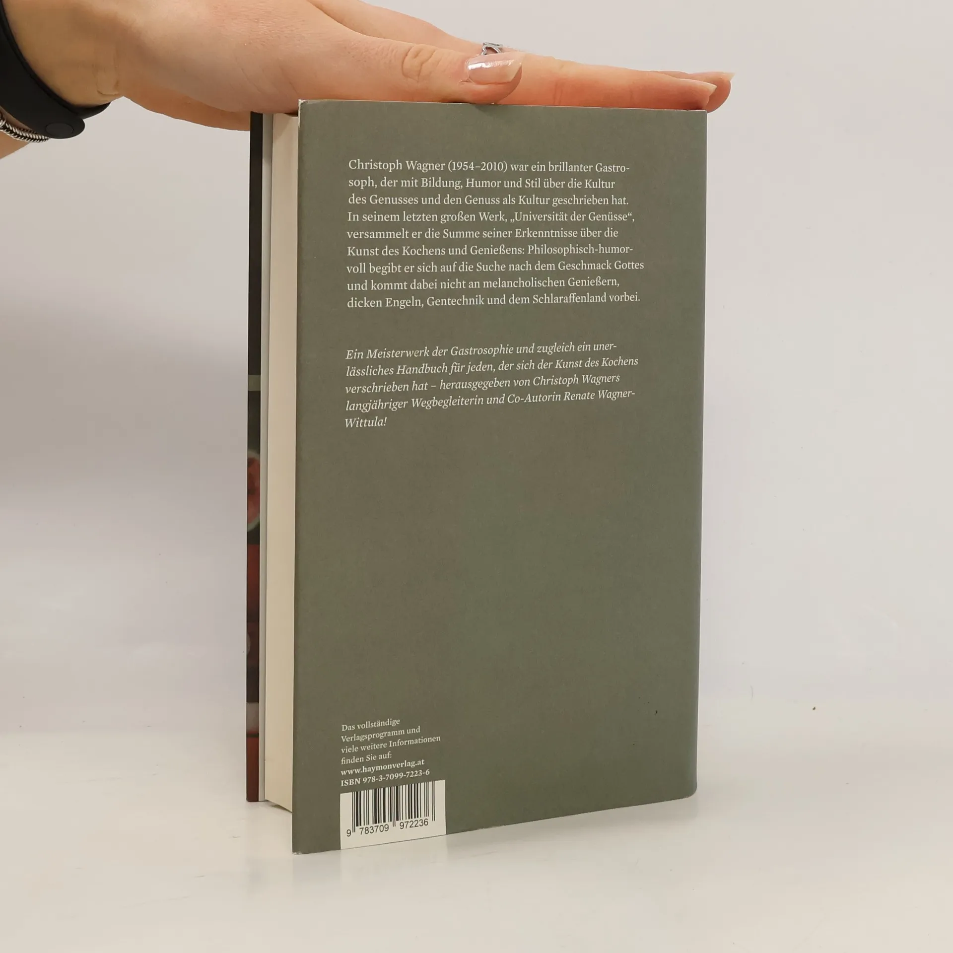 EINE WUNDERVOLLE REISE IN DIE WELT DER KULINARIK Christoph Wagner (1954-2010) war ein brillanter Gastrosoph, der mit Bildung, Humor und Stil über die Kultur des Genusses schrieb. In seinem letzten Werk versammelte er die Summe seiner Erkenntnisse zur Kunst des Kochens und Genießens. In beeindruckender Weise zeigt er, dass unser Verständnis von Genuss und Geschmack nicht zufällig ist. Wir essen, was wir essen, weil Malerei, Literatur, Musik, Weltpolitik und Geschichte unauslöschliche Spuren hinterlassen haben. Guter Geschmack ist oft ein Produkt der Marktwirtschaft, und selbst der liebe Gott hat seine Finger im Spiel, als der größte Gourmet des Universums. Philosophisch-humorvoll begibt sich Wagner auf die Suche nach dem Geschmack Gottes und begegnet dabei melancholischen Genießern, dicken Engeln, Gentechnik und dem Schlaraffenland. Dieses Meisterwerk der Gastrosophie ist gleichzeitig ein unerlässliches Handbuch für alle, die sich der Kunst des Kochens widmen. Es ist eine inspirierende Reise in die Welt des guten Geschmacks, herausgegeben von Wagners langjähriger Wegbegleiterin Renate Wagner-Wittula. „Ein fulminantes Werk! Selbst die Geschichten sind zum Verschlingen, denn Wagner ist ein äußerst unterhaltsamer und kluger Schreiber!“