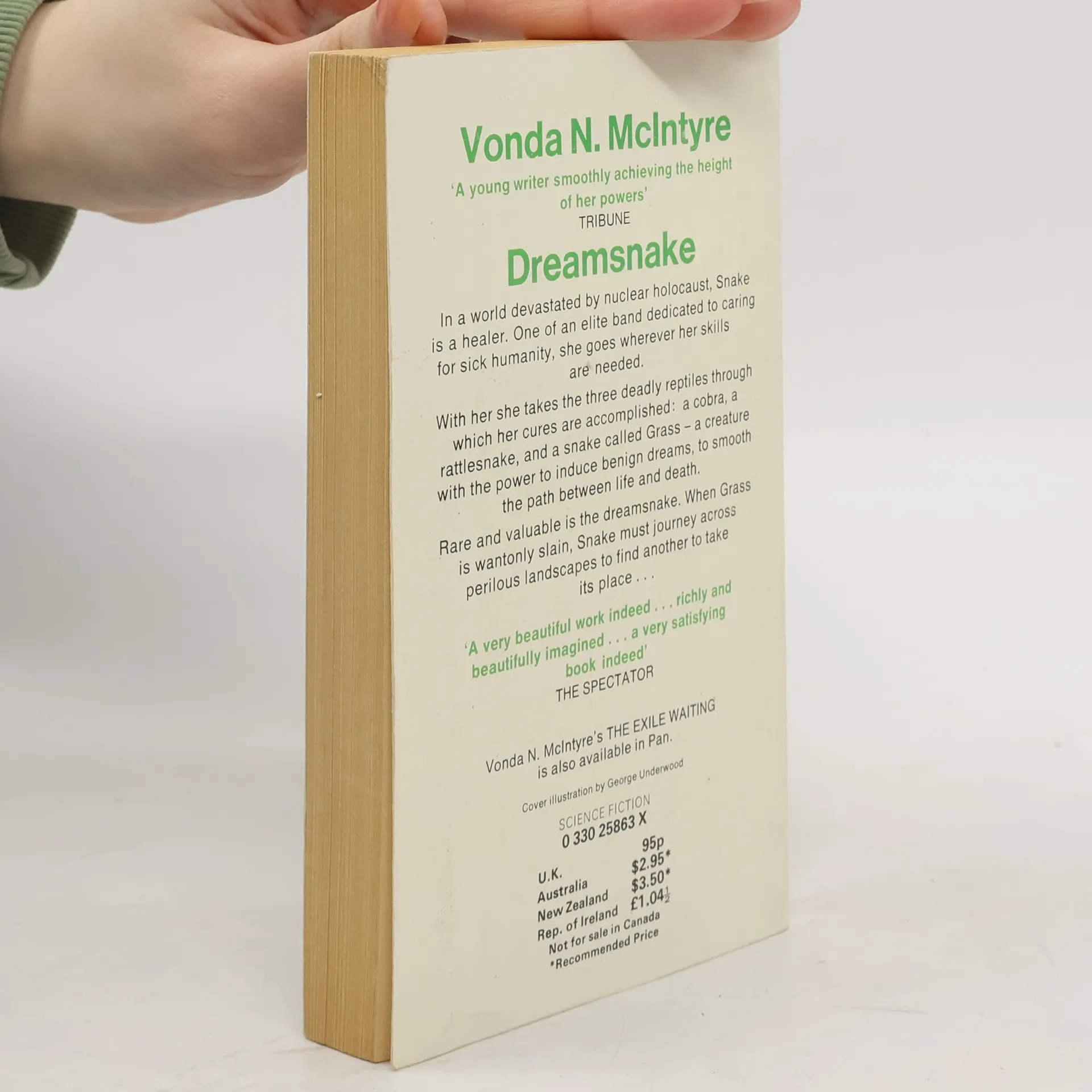 In a world devastated by nuclear holocaust, Snake is a healer. One of an elite band dedicated to caring for sick humanity, she goes wherever her skills are needed. With her she takes the three deadly reptiles through which her cures are accomplished: a cobra, a rattlesnake, and a snake called Grass – a creature with the power to induce benign dreams, to smooth the path between life and death. Rare and valuable is the dreamsnake. When Grass is wantonly slain, Snake must journey across perilous landscapes to find another to take its place…