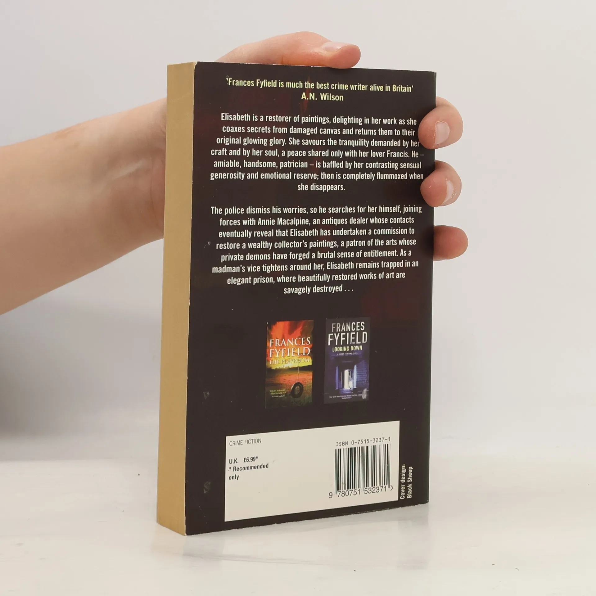 Elisabeth is a picture restorer. This gives her the solitude and independence she needs - living and working alone in her flat. Despite her skills and reliability, Elizabeth undercharges for her work - valuing the worth of the paintings rather more than herself. Her ambitions are modest: beauty to look upon, unintrusive friendships and complete privacy. But when a mysterious and obviously wealthy man commissions her to restore his fabulous collection, an uncharacteristic combination of curiosity and financial need prompts her to accept his offer. Elisabeth soon realises her error, as the past and the present combine to make privacy her nemesis. As she becomes hostage to her patron, her lover and her friend realise they know nothing about her, or where she might be.