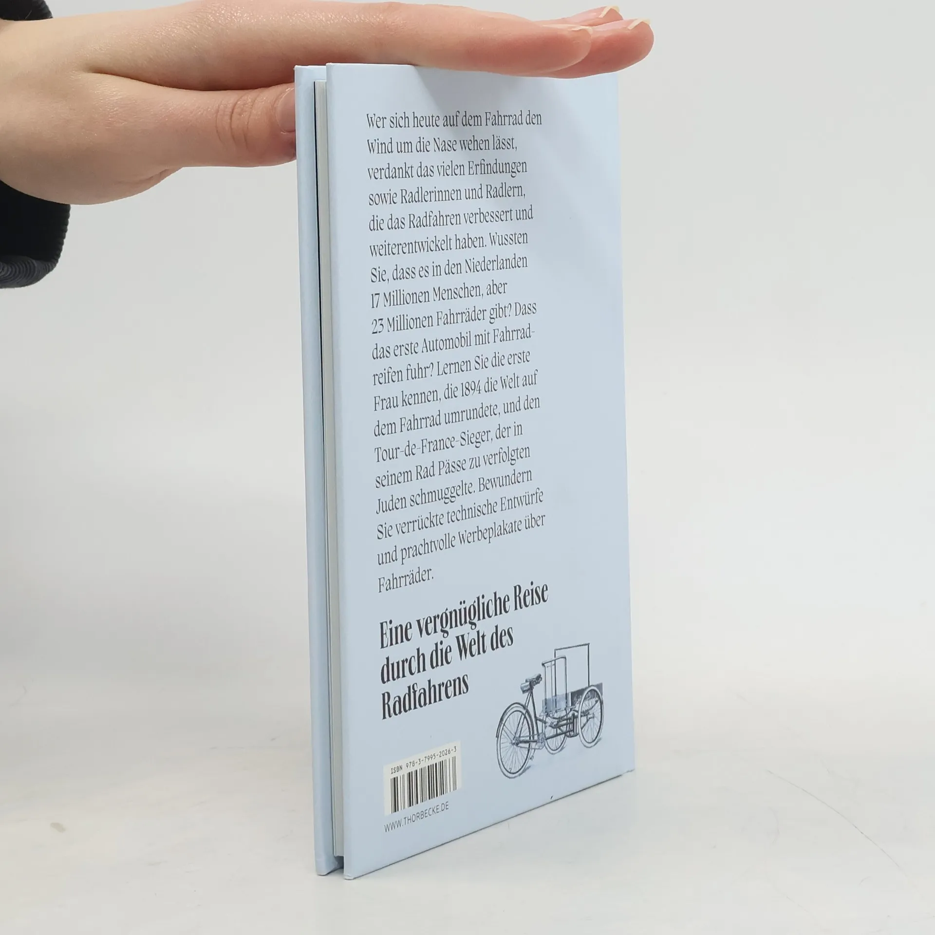 Fahrradfahren ist eine wunderbare Möglichkeit, sich fortzubewegen und die Umgebung zu erkunden. Wer sich heute auf dem Fahrrad den Wind um die Nase wehen lässt, verdankt das vielen Erfindern und Radlerinnen, die das Radfahren verbessert und weiterentwickelt haben. Wussten Sie, dass es in den Niederlanden 17 Millionen Menschen, aber 23 Millionen Fahrräder gibt? Dass bei Rennrädern bis in die 1960er Jahre Holzfelgen üblich waren? Dass das leichteste Straßenrad der Welt unter 5 kg wiegt? Lernen Sie die erste Frau kennen, die schon 1894 die Welt auf dem Fahrrad umrundete, und den Tour-de-France-Sieger, der in seinem Rad Pässe zu verfolgten Juden schmuggelte. Bewundern Sie verrückte technische Entwürfe und prachtvolle Werbeplakate über Fahrräder. Eine vergnügliche Reise durch die Welt des Radfahrens.