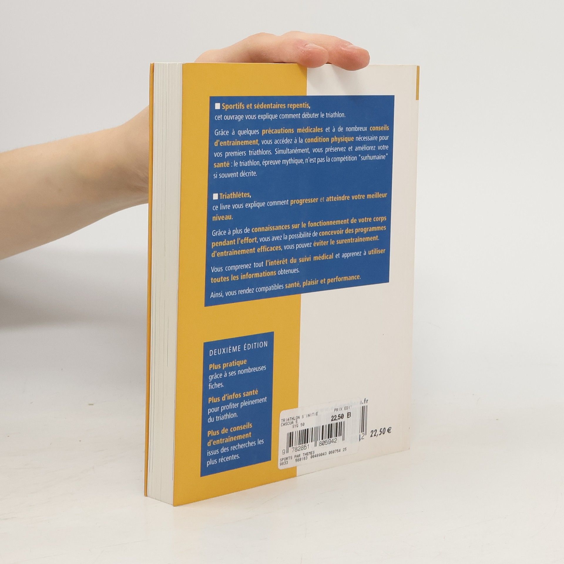 Cet ouvrage est devenu une référence pour plus de 35 000 triathlètes depuis sa parution il y a une quinzaine d’années. D’abord considéré comme un sport extrême réservé à une certaine élite, le triathlon s’est progressivement ouvert à une population bien plus large, notamment grâce à la création d’épreuves plus courtes et plus accessibles. Stéphane Cascua, triathlète confirmé et médecin du sport, propose une nouvelle édition actualisée et complétée de chapitres inédits en intégrant cette évolution de la pratique. Le lecteur bénéficie également d’une présentation et d’illustrations entièrement revues. Il propose notamment des conseils d’entraînement et des informations spécifiques aussi bien à ceux qui veulent découvrir le triathlon qu’aux pratiquants s’orientant vers des épreuves de longue distance. L’objectif est de permettre à chaque triathlète, quels que soient son niveau et ses objectifs, de progresser dans sa discipline en préservant sa santé.