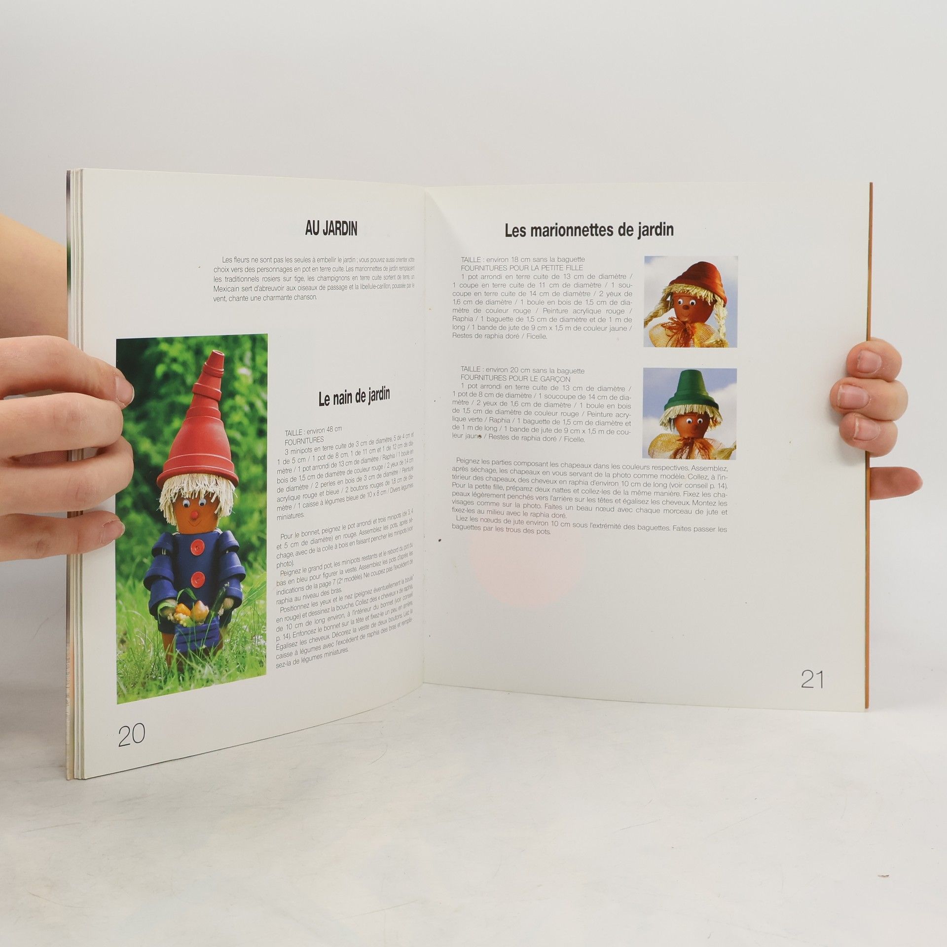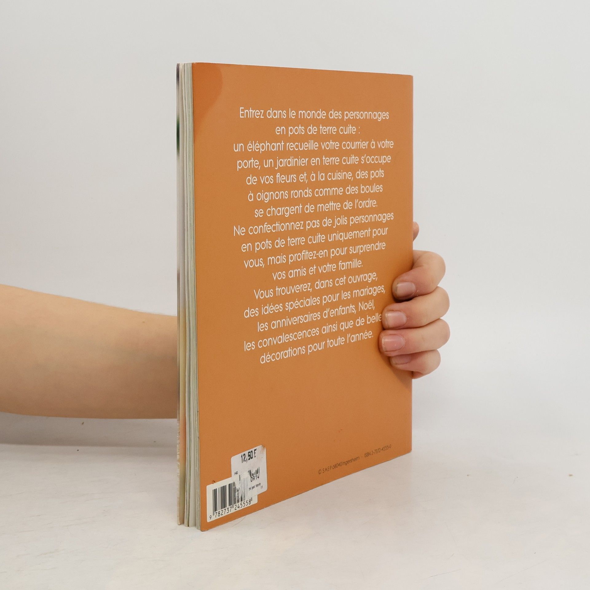 Entrez dans le monde des personnages en pots de terre cuite : un éléphant recueille votre courrier à votre porte, un jardinier en terre cuite s'occupe de vos fleurs et, à la cuisine, des pots à oignons ronds comme des boules se chargent de mettre de l'ordre. Ne confectionnez pas de jolis personnages en pots de terre cuite uniquement pour vous, mais profitez-en pour surprendre vos amis et votre famille. Vous trouverez, dans cet ouvrage, des idées spéciales pour les mariages, les anniversaires d'enfants, Noël, les convalescences ainsi que de belles décorations pour toute l'année.