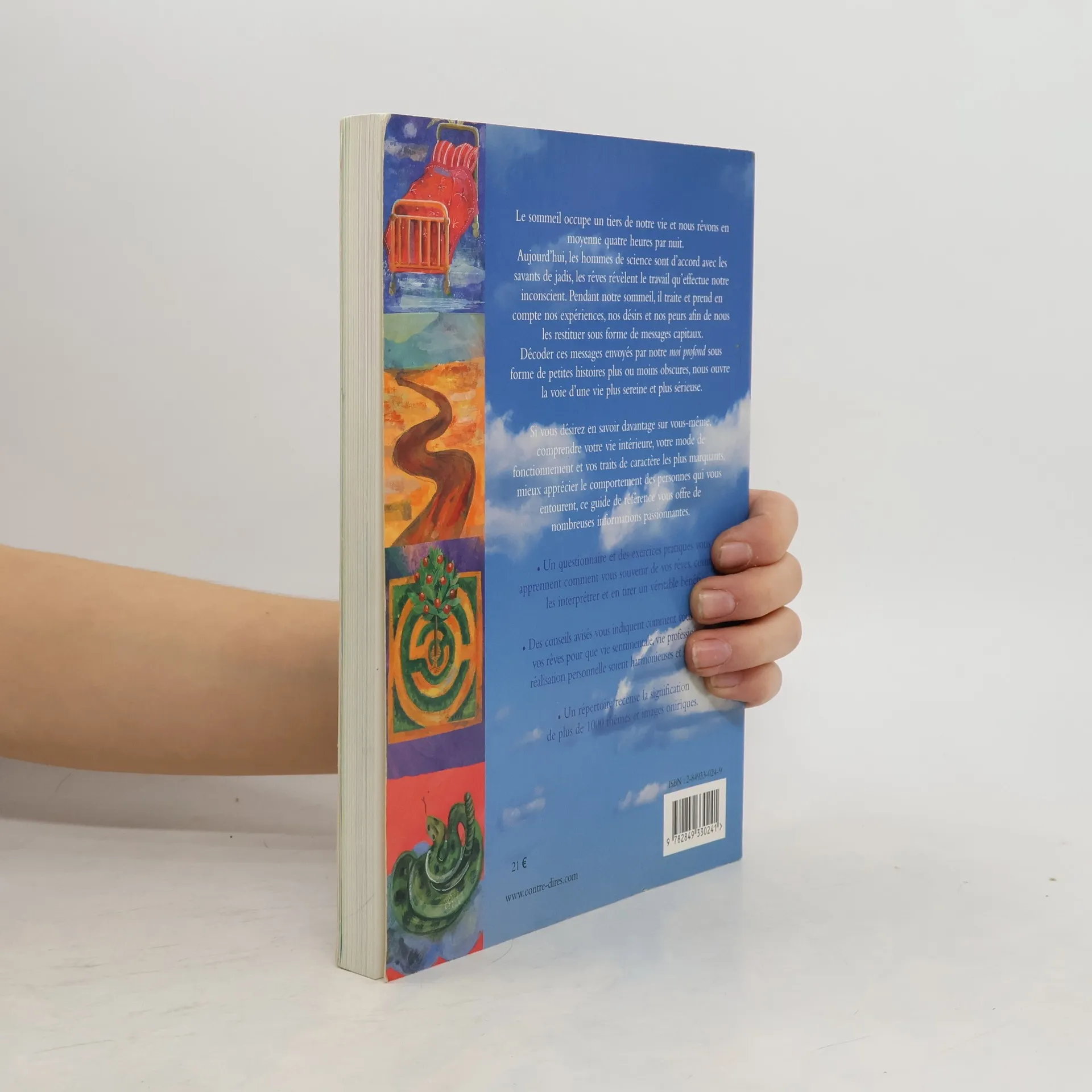 Le sommeil occupe un tiers de notre vie et nous rêvons en moyenne quatre heures par nuit. Aujourd'hui, les hommes de science sont d'accord avec les savants de jadis, les rêves révèlent le travail qu'effectue Notre inconscient. Pendant notre sommeil, il traite et prend en compte nos expériences, nos désirs et nos peurs afin de nous les restituer sous forme de messages capitaux. Décoder ces messages envoyés par notre moi profond sous forme de petites histoires plus ou moins obscures, nous ouvre la voie d'une vie plus sereine et plus sérieuse. Si vous désirez en savoir davantage sur vous-même, comprendre votre vie intérieure, votre mode de fonctionnement et vos traits de caractère les plus marquants, mieux apprécier le comportement des personnes qui vous entourent, ce guide de référence vous offre de nombreuses informations passionnantes. Un questionnaire et des exercices pratiques vous apprennent comment vous souvenir de vos rêves, comment les interpréter et en tirer un véritable bénéfice. Des conseils avisés vous indiquent comment vous servir de vos rêves pour que vie sentimentale, vie professionnelle et réalisation personnelle soient harmonieuses et satisfaisantes. Un répertoire recense la signification de plus de 1000 thèmes et images oniriques.