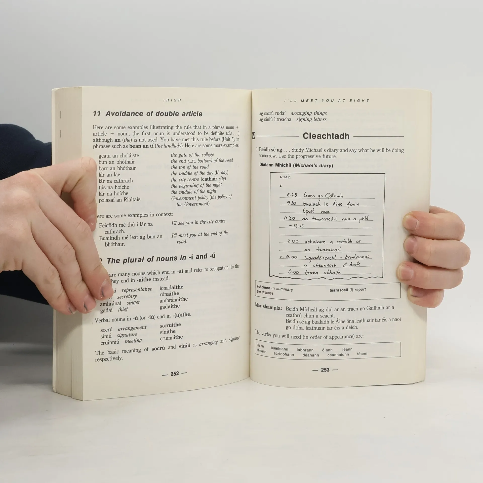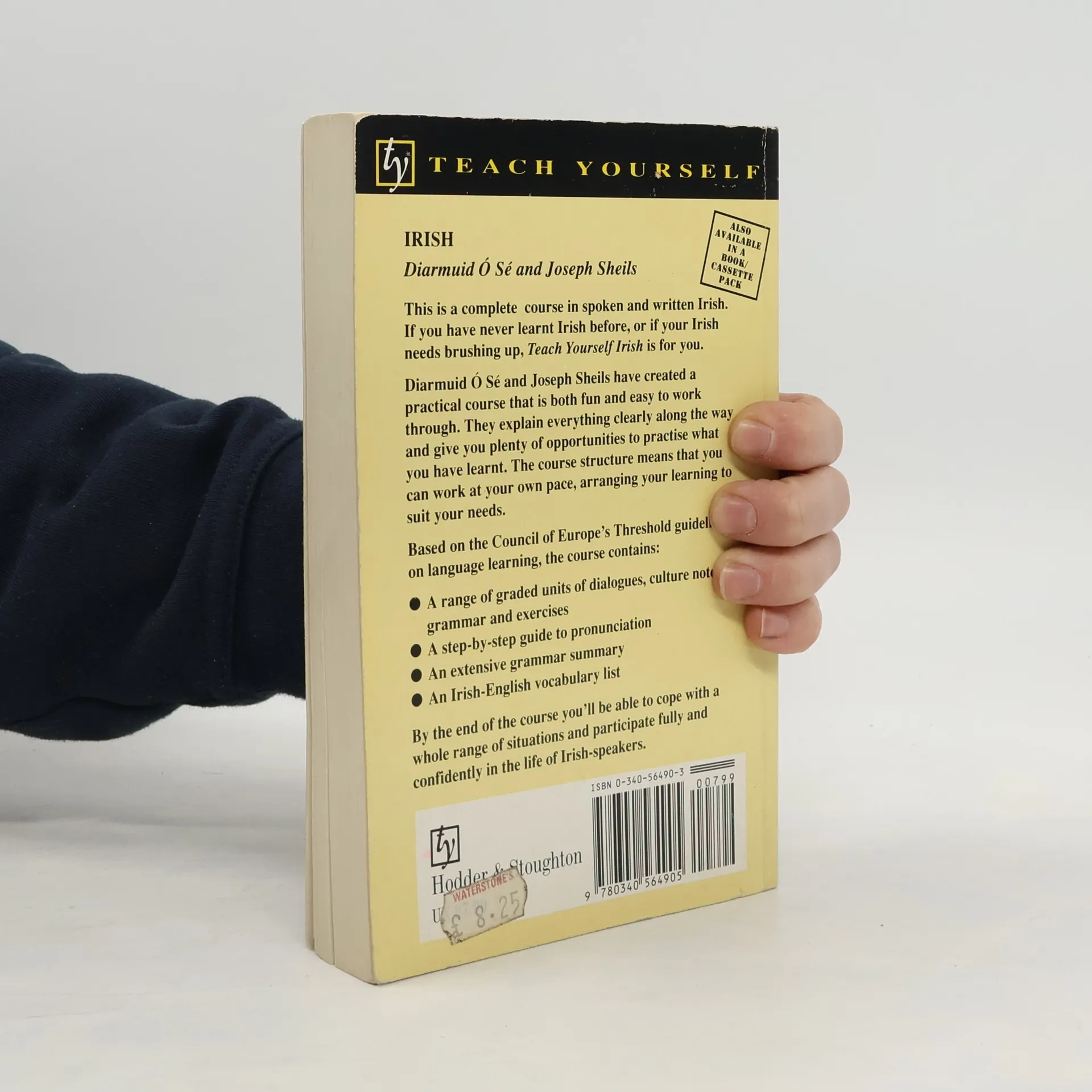 This course in spoken and written Irish for beginners is based on the functional objectives of the Council of Europe. It uses everyday situations for dialogues and exercises which put the emphasis on practical use of the language. A mix of cultural aspects are used as a vehicle for learning. The complete course includes a C90 audio cassette.