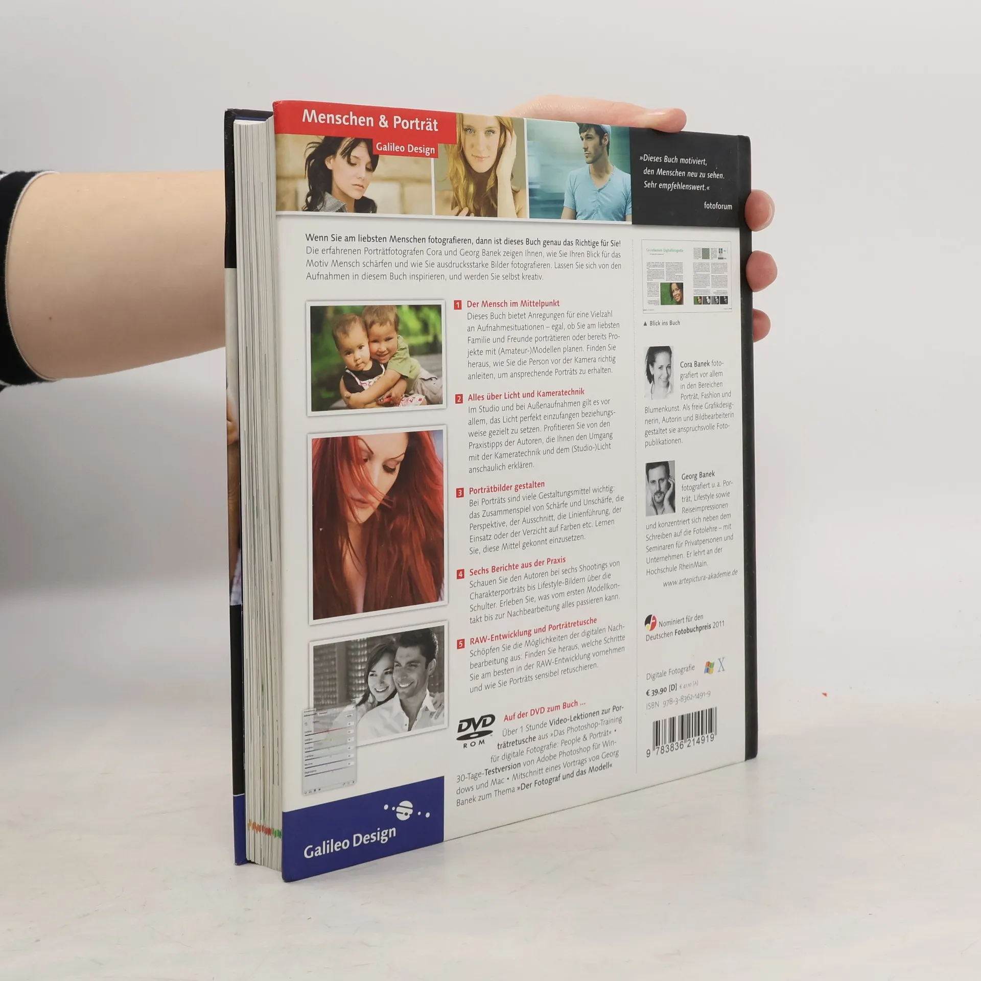 Sie fotografieren gerne Menschen, fragen sich aber manchmal, wie Sie Ihren Porträtfotos einen ganz besonderen Ausdruck verleihen können? In diesem umfassenden Buch zeigen Ihnen die erfahrenen Porträtfotografen Cora Banek und Georg Banek, wie Sie Ihren Blick für das Motiv Mensch schärfen und durch gezielte Bildgestaltung wirkungsvolle Aufnahmen erzielen können. Die Autoren veranschaulichen Ihnen anhand von vielen Beispielbildern die Wirkung von Perspektive, Anschnitt, Farbe, Schärfe, Bewegung, Lichtführung etc. Erfahren Sie, welche Ausrüstung sinnvoll ist, wie Sie Blitz und Dauerlicht verwenden und wie Sie Shootings on location oder im (Heim-)Studio vorbereiten. Lernen Sie auch, wie Sie eigene Bildprojekte verwirklichen, Ihre Modelle vor der Kamera zielgerichtet anleiten und die Bildergebnisse anschließend mit Hilfe der Nachbearbeitung und der sensiblen Porträtretusche noch weiter veredeln. Hier erleben Sie die Vielfalt der Porträtfotografie!