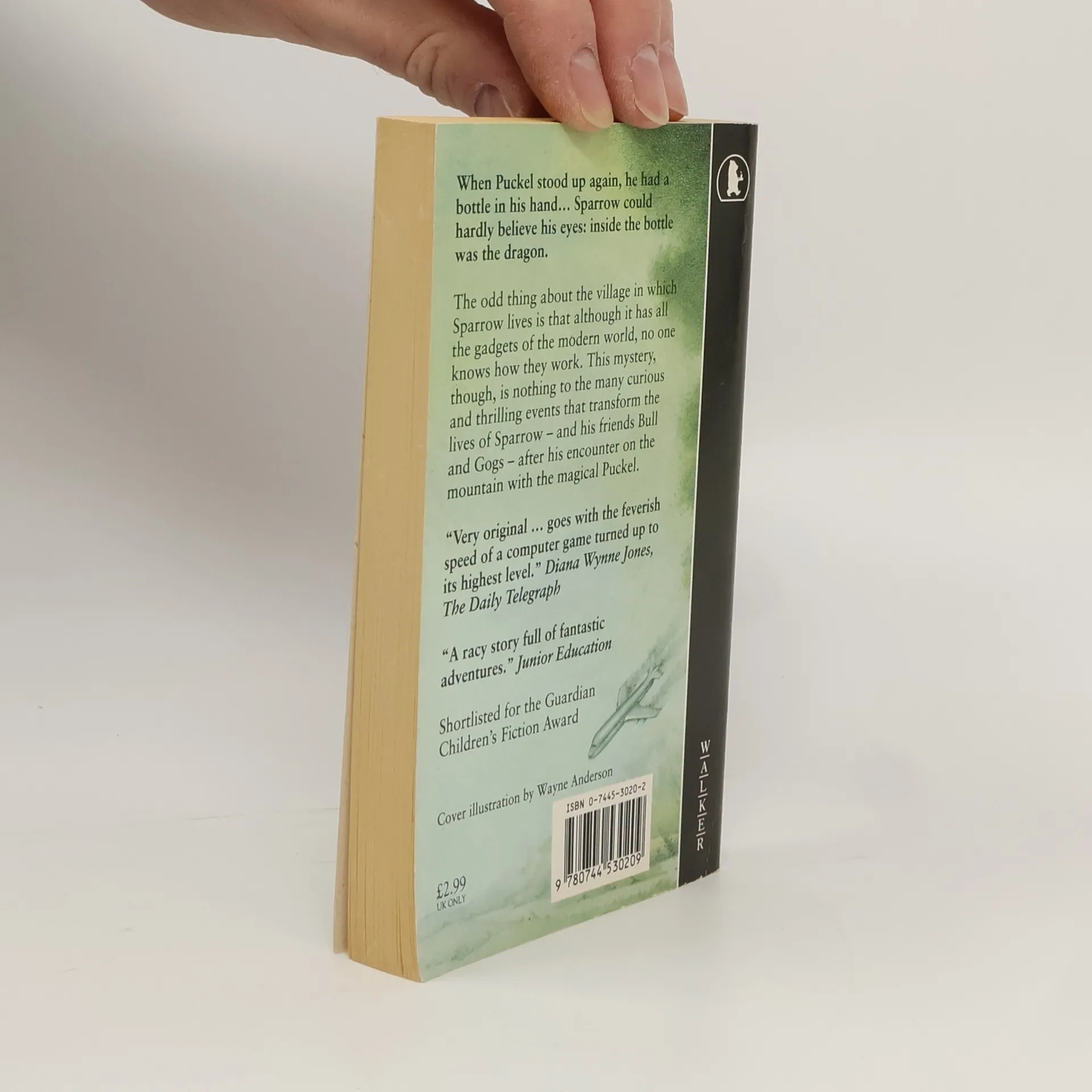 On the face of it, the village in which Sparrow lives is as well-equipped, technologically, as any other in the modern world - there are telephones, televisions, calculators... The odd thing is, though, that no one knows what these machines are for. Even the old reilway line lies useless - and only Sparrow believes in the existence of aerplanes. Dragons, however, are another matter; Sparrow's friend Bull seems to know all about them, and other magic too, which gives him a sort of power over Sparrow and their red-headed companion Gogs. Then, one day on the mountain, Sparrow meets the strange, magical Puckel and his even stranger and more magical stick - and after that, for the three boys, nothing will ever be the same again.