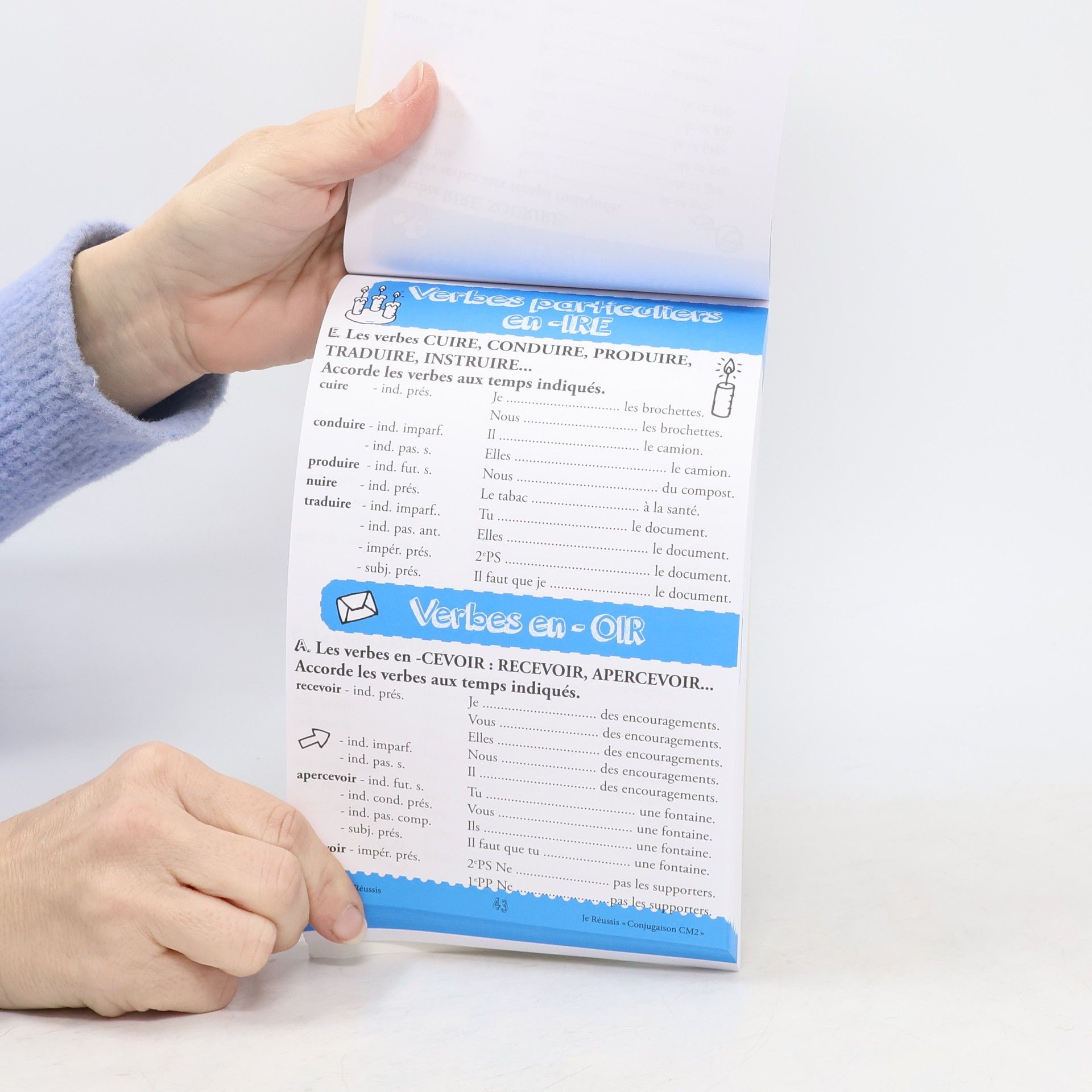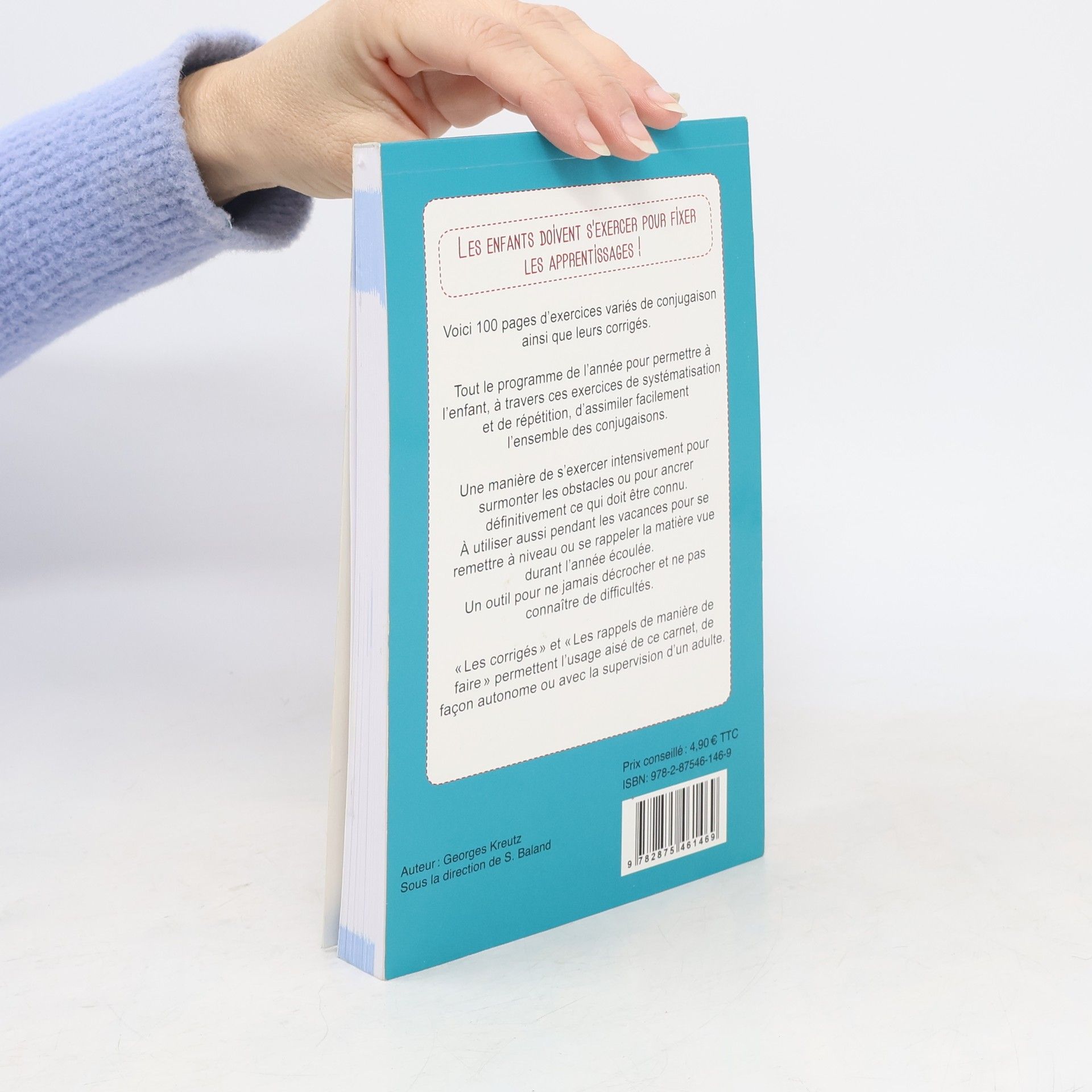 Voici 100 pages d'exercices variés de conjugaison ainsi que leurs corrigés. Tout le programme de l'année pour permettre à l'enfant, à travers ces exercices de systématisation et de répétition, d'assimiler facilement l'ensemble des conjugaisons. Une manière de s'exercer intensivement pour surmonter les obstacles ou pour ancrer définitivement ce qui doit être connu. A utiliser aussi pendant les vacances pour se remettre à niveau ou se rappeler la matière vue durant l'année écoulée. Un outil pour ne jamais décrocher et ne pas connaître de difficultés. "Les corrigés" et "les rappels de manière de faire" permettent l'usage aisé de ce carnet, de façon autonome ou avec la supervision d'un adulte.