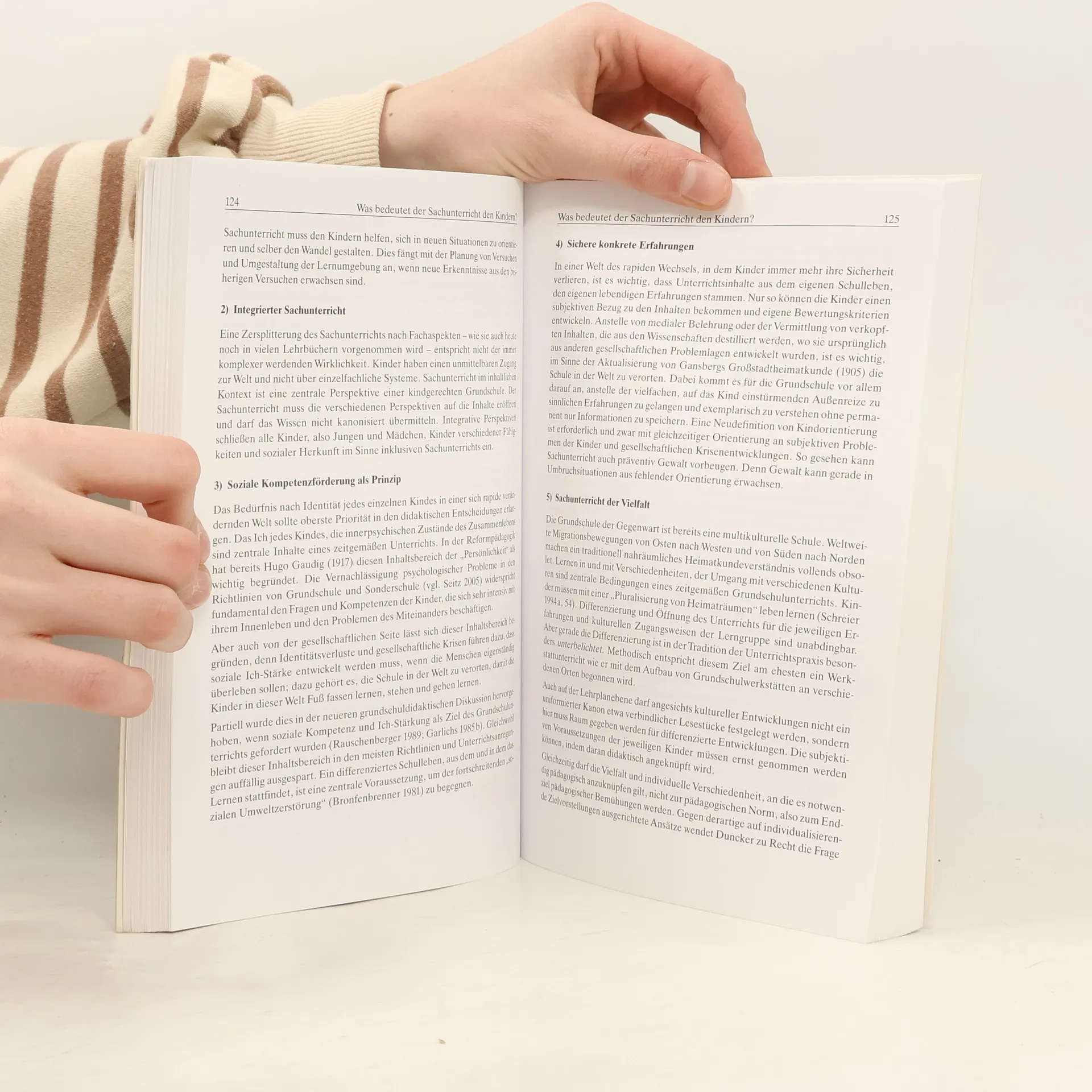 Sachunterricht ist das schönste und zugleich anspruchsvollste Fach, das wir uns denken können. Es gibt unendlich viele mögliche Inhalte und Methoden. Aber wie soll daraus eine Auswahl getroffen werden? Wie kann der Sachunterricht gestaltet werden, dass er Kinder anspricht und nachhaltige Wirkungen in ihrem Denken und Fühlen hinterlässt? Wie reagieren wir im Sachunterricht auf das, was in der Schule und draußen in der Welt passiert? Auf Katastrophen und Kriege, auf Umweltgifte und Streitereien? Was sind wichtige Ziele für den Sachunterricht? Ist es Glücksfähigkeit oder Sozialkompetenz? Ist es viel Wissen oder methodisches Herangehen an Versuche?§Zur Beantwortung von diesen und anderen Fragen müssen wir sehr genau didaktisch nachdenken.§In diesem Buch wird in einfacher Sprache und doch umfassend der didaktische Handwerkskoffer für den Sachunterricht geöffnet. Es wird gezeigt, aus welchen Gedanken und Erkenntnissen in der Geschichte des Sachunterrichts geschöpft wurde, welche Konzeptionen es bei der Einführung des Faches Sachunterricht ab 1970 gab. Und es werden die grundlegenden didaktischen Bedingungsfelder Gesellschaft, Kind und Sache in wichtigen Gedanken erläutert. Dazu gibt es viele erläuternde Abbildungen und eindrucksvolle Fotos von Kindern aus aller Welt.§Dieses Buch hilft nicht nur beim didaktischen Denken, sondern gibt auch einen Überblick über neuere Ansätze des Sachunterrichts wie Erfahrungsorientierung, Forschendes Lernen, Handlungsorientierung oder Projektorientierung. Die neuen Erkenntnisse der Forschung über guten Unterricht werden erstmals auf den Sachunterricht bezogen in 10 Beispielfeldern vorgestellt.§Wer die bisherige Einführung in die Didaktik des Sachunterrichts kennt, wird sehen, dass hier wirklich ein gänzlich neues Buch entstanden ist, das die neuesten Forschungsergebnisse einbezieht und doch wunderbar einfach und praxisnah geschrieben worden ist.