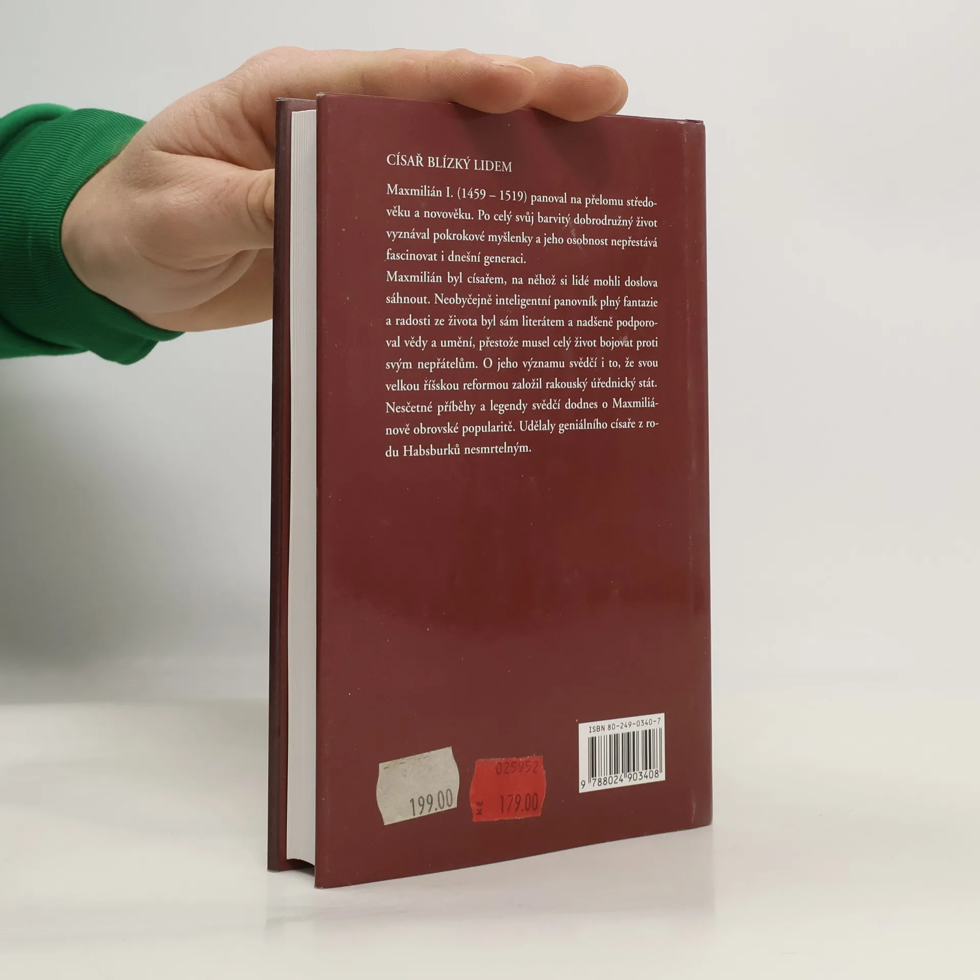 Životopis císaře, který svou obratnou mocenskou i dynastickou politikou a mimořádnou silou vlastní osobnosti položil základy habsburského impéria. Maxmilián I. (1459-1519) panoval na přelomu středověku a novověku. Po celý svůj barvitý dobrodružný život vyznával pokrokové myšlenky a jeho osobnost nepřestává fascinovat i dnešní generaci. Neobyčejně inteligentní panovník plný fantazie a radosti ze života byl sám literátem a nadšeně podporoval vědy a umění, přestože musel celý život bojovat proti svým nepřátelům. Vydání 1.... celý text
