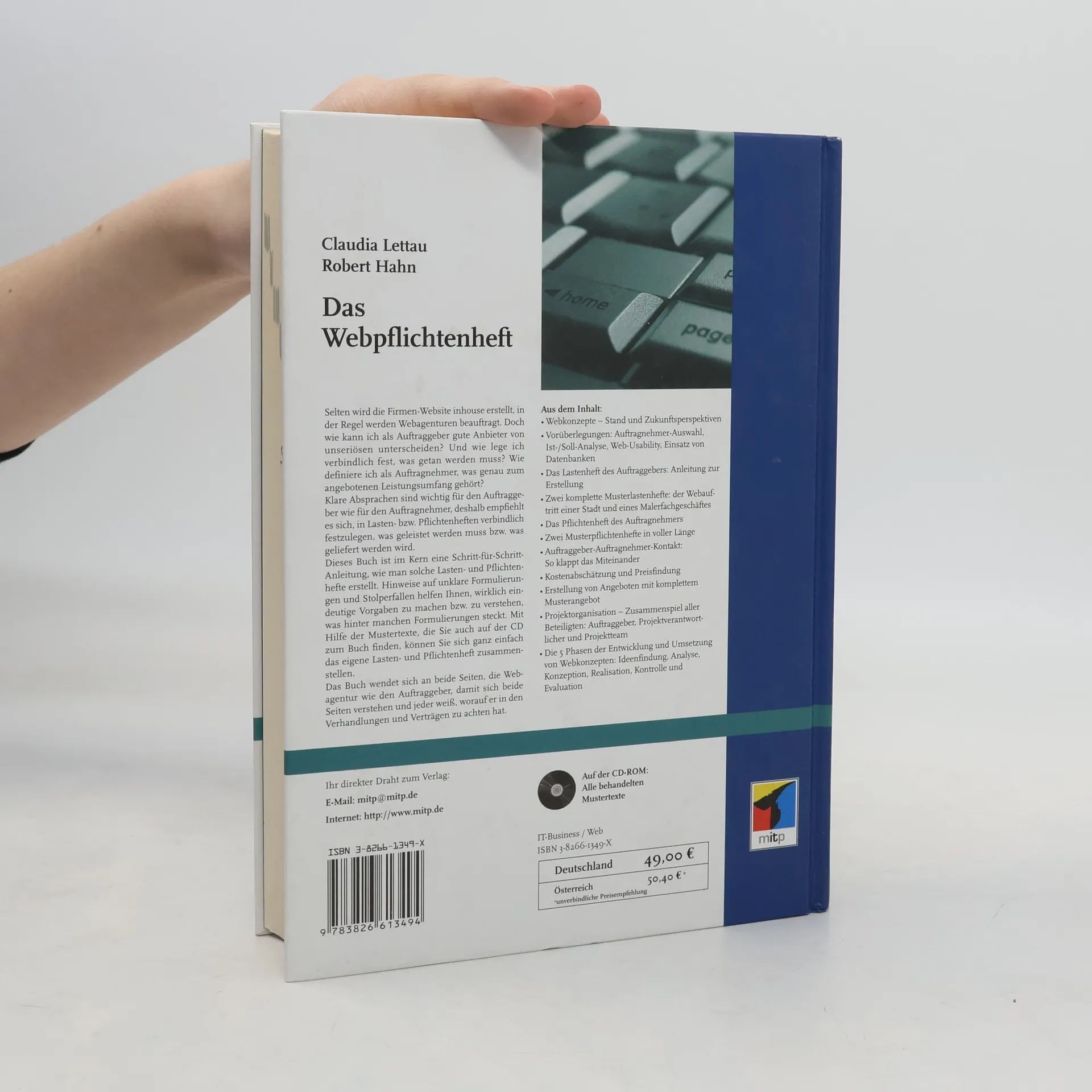 Ein professioneller Webauftritt ist inzwischen ein fast selbstverständliches Aushängeschild. Selten wird die Website inhouse erstellt, in der Regel werden Webagenturen beauftragt. Doch wie kann ich als Auftraggeber gute Anbieter von unseriösen unterscheiden? Und wie lege ich verbindlich fest, was getan werden muss? Wie definiere ich als Auftragnehmer, was genau zum angebotenen Leistungsumfang gehört? Klare Absprachen sind wichtig für den Auftraggeber wie für den Auftragnehmer, deshalb empfiehlt es sich, in Lasten- bzw. Pflichtenheften verbindlich festzulegen, was geleistet werden muss bzw. was geliefert werden wird.§§Dieses Buch ist im Kern eine Schritt-für-Schritt Anleitung, wie man solche Lasten- und Pflichtenhefte erstellt. Hinweise auf unklare Formulierungen und Stolperfallen helfen Ihnen, wirklich eindeutige Vorgaben zu machen bzw. zu verstehen, was hinter manchen Formulierungen steckt. Mit Hilfe der Mustertexte, die Sie auch auf der CD zum Buch finden, können Sie sich ganz einfach das eigene Lasten- und Pflichtenheft zusammenstellen. Darüber hinaus gewährt das Buch aber auch einen Blick hinter die Kulissen der jeweils anderen Seite.Es will vermitteln zwischen Auftraggeber und Auftragnehmer und wendet sich bewusst an beide Seiten. Nur wenn beide Seiten einander verstehen und effektiv zusammenarbeiten, lässt sich ein gelungenes Webkonzept entwickeln und umsetzen.