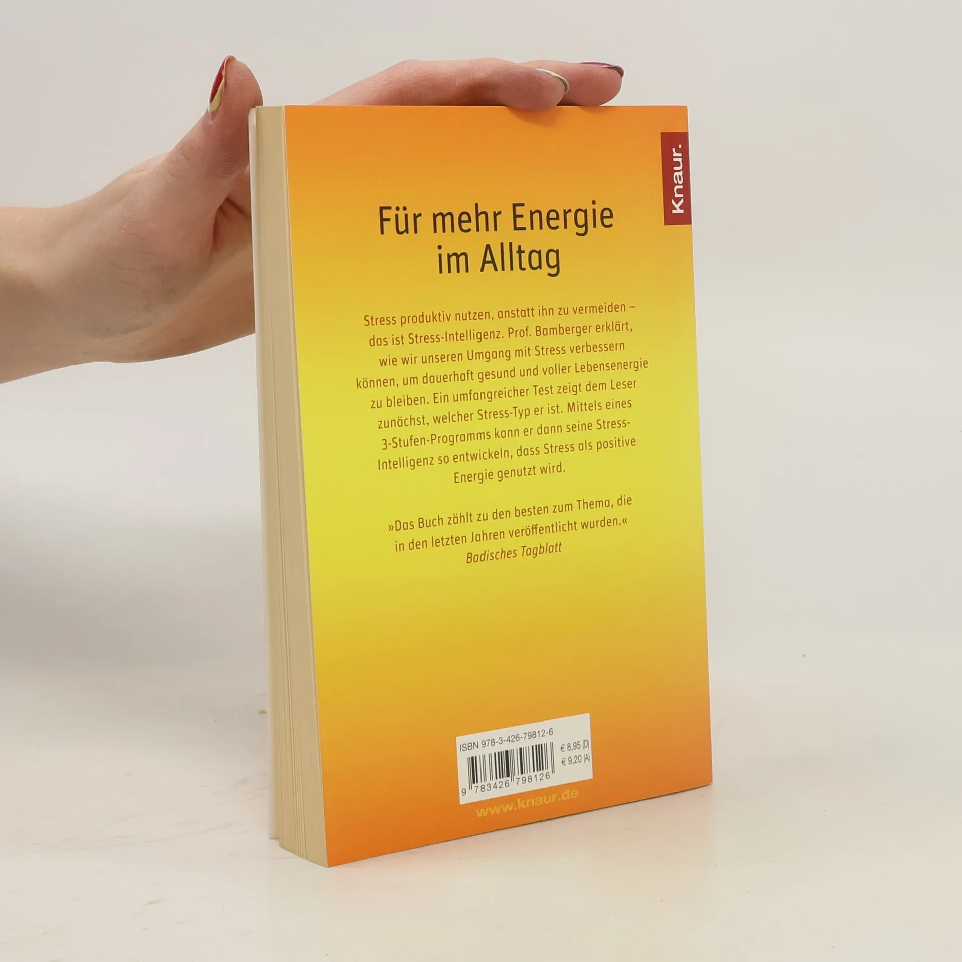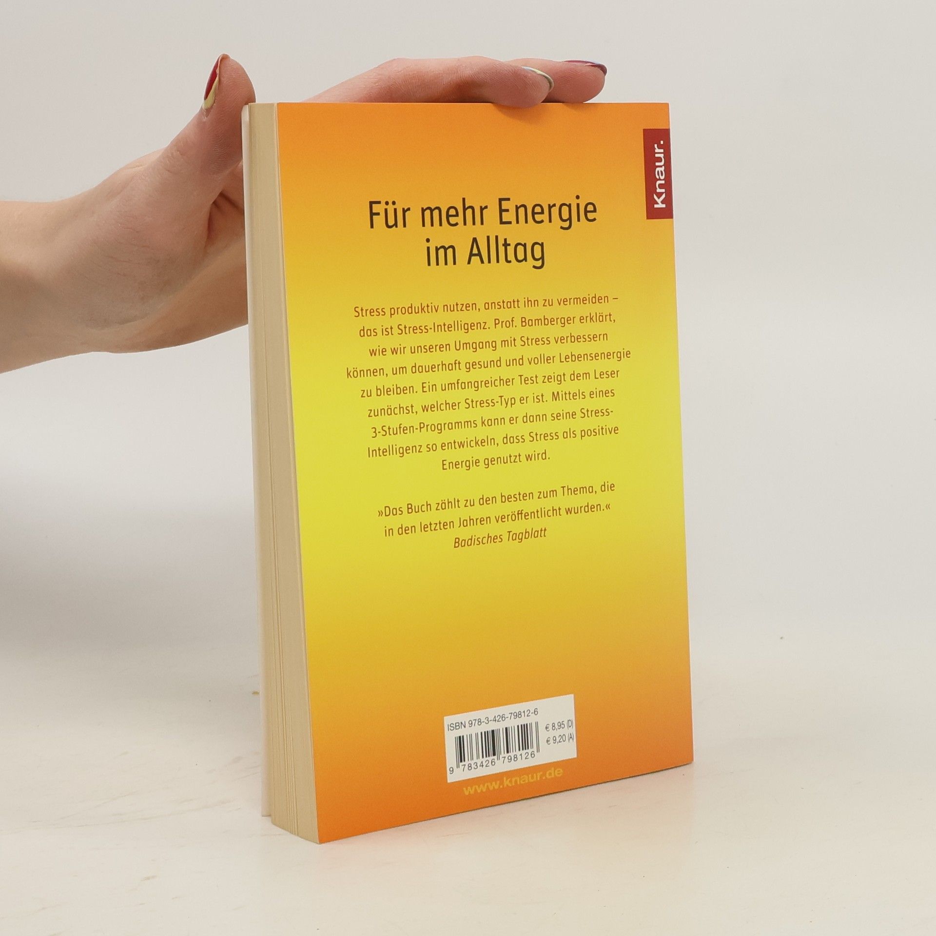 So holen Sie sich Energie im Alltag Stress produktiv nutzen, anstatt ihn zu vermeiden – das ist Stress-Intelligenz. Prof. Bamberger beschreibt, wie wir unseren Umgang mit Stress verbessern können, um dauerhaft gesund und voller Lebensenergie zu bleiben. Ein umfangreicher Test zeigt dem Leser zunächst, welcher Stress–Typ er ist. Mittels eines 3-Stufen-Programms kann er dann seine Stress-Intelligenz so entwickeln, dass sie Stress als positive Energie genutzt wird. »Das Buch zählt zu den besten zum Thema, die in den letzten Jahren veröffentlicht wurden.« Badisches Tagblatt