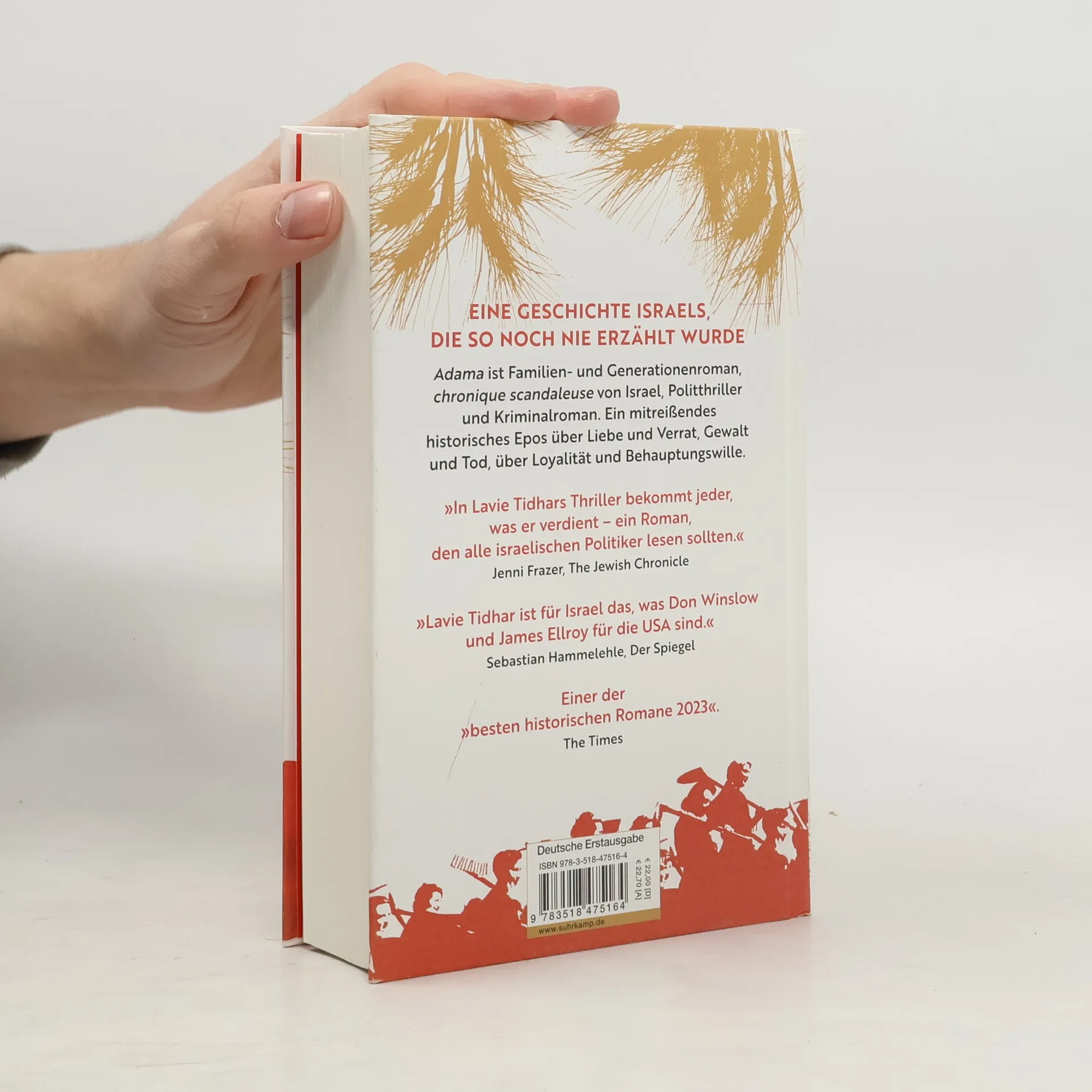 <strong> Adama ist Familien- und Generationen-Roman, chronique scandaleuse von Israel, Polit-Thriller und Kriminalroman. Ein mitreißendes historisches Epos über Liebe und Verrat, Gewalt und Tod, über Loyalität und Behauptungswille.</strong> 1946 beginnt die junge Ruth, sich in Palästina ein neues Leben aufzubauen, getrieben von jugendlichen Idealen in einem Land, das ihr feindlich gesinnt ist. Sie ist eine ungarische Zionistin, die, anders als die meisten Mitglieder ihrer Familie, den Nazis in Budapest entkommen konnte. Ruth wird das Herz des Kibbuz Trashim, und für sie ist der Kibbuz heilig, heilige Erde, also »Adama«, seine Existenz ist ihre Lebensaufgabe. Wenn dafür knallharte Entscheidungen nötig sind, dann wird sie sie treffen, inklusive Gewalt und Mord. Wir folgen Ruth und den Ihren durch die Jahre 1945 bis 2009. Und damit durch die Turbulenzen des Staates Israel – die Auseinandersetzung mit den Briten, die Vertreibung der Araber, der Sechs-Tage-Krieg und der Jom-Kippur-Krieg machen Ruth womöglich noch zäher und härter. Neben dem Porträt einer beeindruckenden Frauenfigur und ihrer Familie, schreibt Lavie Tidhar auch die Gewaltgeschichte Israels fort.
