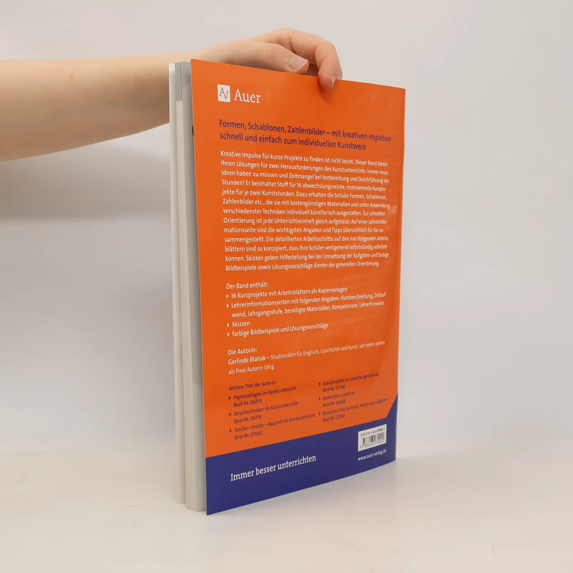 Der Band bietet Stoff für 16 abwechslungsreiche, motivierende Kurzprojekte für zwei bis drei Kunststunden in den Jahrgangsstufen 5-10. Dazu erhalten die Schüler Formen, Schablonen, Zahlenbilder etc., die sie mit kos-tengünstigen Materialien und unter Anwendung ver-schiedenster Techniken weiter künstlerisch ausgestalten. Kreative Impulse nutzen Manchmal muss es im Kunstunterricht in der Sekundarstufe ein kurzes Projekt sein. Doch oft fehlt es einerseits am richtigen Impuls und andererseits an der nötigen Zeit. Dieser Band stellt Ihnen Ideen und Hinweise für 16 kreative Kurzprojekte für Ihren Kunstunterricht bereit. Vielfältige Materialien Neben verschiedenen Arbeitsblättern als Kopiervorlagen für das Fach Kunst gibt Ihnen dieser Band Formen, Schablonen, Zahlenbilder und vieles mehr an die Hand. Diese können mit kostengünstigen Materialien und unter Anwendung wichtiger Techniken ausgestaltet werden. Übersichtliche Struktur Auf übersichtliche Lehrerinformationsseiten mit den wichtigsten Angaben folgen die weiteren Arbeitsschritte in Form von Arbeitsblättern als Kopiervorlagen für die Schüler, damit ein selbstständiges Arbeiten im Kunstunterricht zustande kommt. Weiterhin erhalten Sie farbige Bildbeispiele zur Orientierung. Der Band enthält: - 16 Kurzprojekte mit Arbeitsblättern als Kopiervorlagen - Lehrerinformationsseiten mit folgenden Angaben: Kurzbeschreibung, Zeitaufwand, Jahrgangsstufe, benötigte Materialien, Kompetenzen, Lehrerhinweise - Skizzen - farbige Bildbeispiele und Lösungsvorschläge