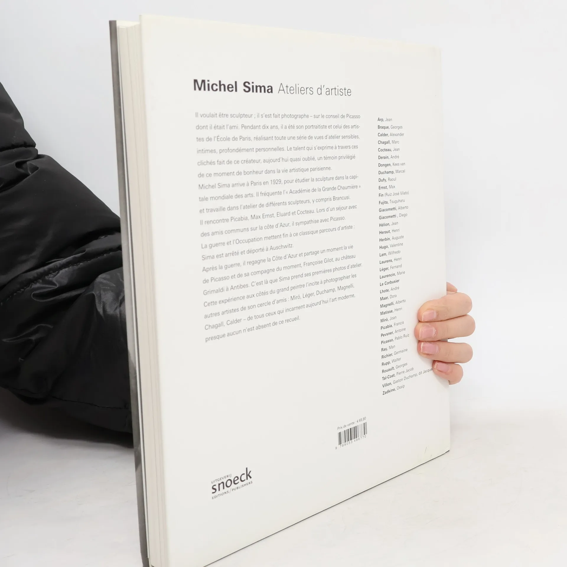 Il voulait être sculpteur ; il s'est fait photographe - sur le conseil de Picasso dont il était l'ami. Pendant dix ans, il a été son portraitiste et celui des artistes de l'École de Paris, réalisant toute une série de vues d'atelier sensibles, intimes, profondément personnelles. Le talent qui s'exprime à travers ces clichés fait de ce créateur, aujourd'hui quasi oublié, un témoin privilégié de ce moment de bonheur dans la vie artistique parisienne. Michel Sima arrive à Paris en 1929, pour étudier la sculpture dans la capitale mondiale des arts. Il fréquente l'"Académie de la Grande Chaumière" et travaille dans l'atelier de différents sculpteurs, y compris Brancusi. Il rencontre Picabia, Max Ernst, Eluard et Cocteau. Lors d'un séjour avec des amis communs sur la côte d'Azur, il sympathise avec Picasso. La guerre et l'Occupation mettent fin à ce classique parcours d'artiste : Sima est arrêté et déporté à Auschwitz. Après la guerre, il regagne la Côte d'Azur et partage un moment la vie de Picasso et de sa compagne du moment, Françoise Gilot, au château Grimaldi à Antibes. C'est là que Sima prend ses premières photos d'atelier. Cette expérience aux côtés du grand peintre l'incite à photographier les autres artistes de son cercle d'amis : Miro, Léger, Duchamp, Magnelli, Chagall, Calder - de tous ceux qui incarnent aujourd'hui l'art moderne, presque aucun n'est absent de ce recueil.