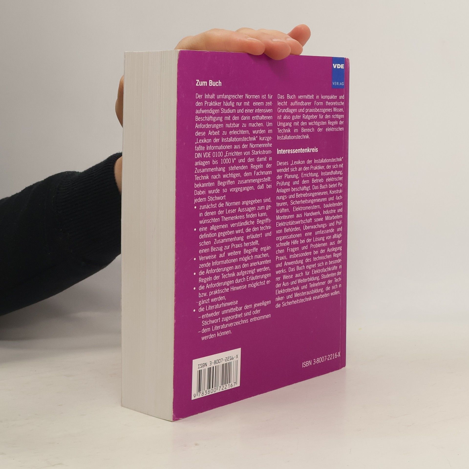 Der Inhalt umfangreicher Normen ist für den Praktiker häufig nur mit einem zeitaufwendigen Studium und einer intensiven Beschäftigung mit den darin enthaltenen Anforderungen nutzbar zu machen. Um diese Arbeit zu erleichtern, wurden im „Lexikon der Installationstechnik“ kurzgefaßte Informationen aus der Normenreihe DIN VDE 0100 „Errichten von Starkstromanlagen bis 1000 V“ und den damit in Zusammenhang stehenden Regeln der Technik nach wichtigen, dem Fachmann bekannten Begriffen zusammengestellt. Dabei wurde so vorgegangen, daß bei jedem Stichwort zunächst die Normen angegeben sind, in denen der Leser Aussagen zum gewünschten Themenkreis finden kann, eine allgemein verständliche Begriffsdefinition gegeben wird, die den technischen Zusammenhang erläutert und einen Bezug zur Praxis herstellt, Verweise auf weitere Begriffe ergänzende Informationen möglich machen, die Anforderungen aus den anerkannten Regeln der Technik aufgezeigt werden, die Anforderungen durch Erläuterungen bzw. praktische Hinweise möglichst ergänzt werden. Das Buch vermittelt in kompakter und leicht auffindbarer Form theoretische Grundlagen und praxisbezogenes Wissen, ist also guter Ratgeber für den richtigen Umgang mit den wichtigsten Regeln der Technik im Bereich der elektrischen Installationstechnik.