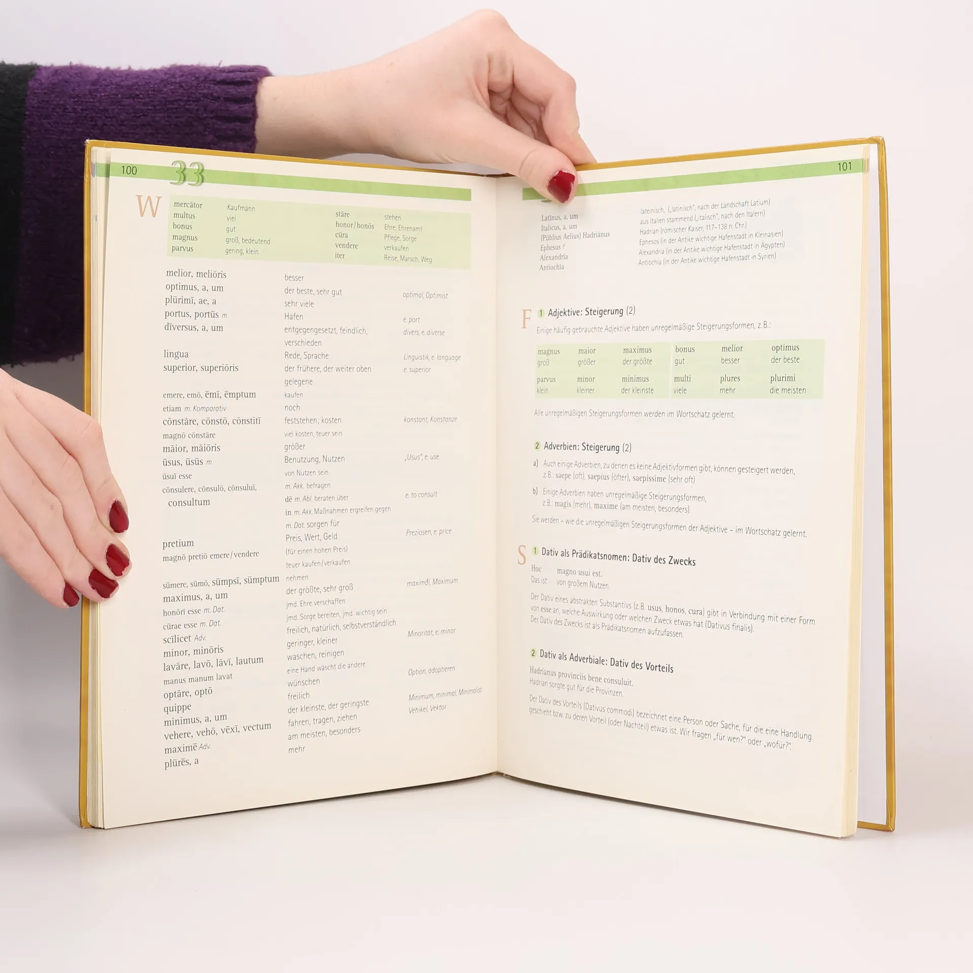 prima A erhält seine Prägung durch ein schlüssig durchdachtes Gesamtkonzept für einen mehrjährigen Lateinlehrgang. prima besteht aus zwei Teilen, die man selbstverständlich auch einzeln benutzen kann. 1. Das Lehrwerk für den Spracherwerb, bestehend aus Textband (50 vierseitige Lektionen), Begleitband (Wortschatz und Grammatik) und fakultativen Arbeitsheften und Lernhilfen: Innerhalb der Lektionen dient die jeweils erste Seite einer konsequenten Didaktik der Vorentlastung: Anhand attraktiver Illustrationen und altersgerechter Sach- oder Erzähltexte werden die Schülerinnen und Schüler auf den Inhalt des folgenden Textes vorbereitet. Der sprachlichen Einführung und Vorentlastung dienen die (fakultativen) G-Teile sowie eine systematische und lektionsbezogene Wiederholung bekannter Vokabeln. Auf der zweiten Seite repräsentieren die zentralen Lektionstexte (T-Teile) das gesamte neue Vokabular und den Grammatikstoff. Die T-Teile sorgen für den Aufbau einer soliden Sprachkompetenz und führen in die antike Kultur ein. Geeignete sprachliche Vertiefungsmöglichkeiten bieten sich mit den Zusatztexten (Z-Teile) auf der vierten Seite. So wird schon in der Spracherwerbsphase der Umgang mit Texten betont. Auf der dritten Seite schlägt eine große Vielfalt typisierter Übungen traditionelle wie innovative, sachbetonte, spielerische oder handlungsorientierte Aufgabenstellungen und Arbeitsformen vor. Die Inhalte und sprachlichen Phänomene werden jeweils in übersichtlicher Anordnung vorgestellt. Die Gliederung nach Sequenzen (thematische oder regionale Ausrichtung) schafft einen äußeren Ordnungsrahmen und ermöglicht eine gezielte Einführung in einzelne Segmente der antiken Welt und ihres Weiterwirkens in Europa. In Wortschatz und Grammatik zielt der gesamte Lehrgang konsequent die Texte an, die den Schülerinnen und Schülern später bei der schulischen Lektüre begegnen. Das Vokabular basiert auf den statistischen Untersuchungen zum ”Bamberger Wortschatz“: In der Spracherwerbsphase werden ca. 1200 Wörter und Wendungen (einschließlich Kulturwortschatz) gelernt, die mithilfe der Texte zur Übergangslektüre auf etwa 1400 Vokabeln erweitert werden können; das Volumen der Wortkunde adeo-NORM ist darin verlässlich erfasst. Die Anlage der Grammatikteile folgt einem immer gleichen Gliederungsprinzip (Formenlehre, Satzlehre, ggf. Textgrammatik) und bietet regelmäßig zusammenfassende Übersichten; Diktion und Terminologie orientieren sich an der Kurzgrammatik Grammadux. 2. Die Übergangslektüre mit altersgerechten (behutsam adaptierten) Texten: Der Band gestaltet den Übergang von der Einführung in die Sprache zur Beschäftigung mit der Originallektüre. Die Schülerinnen und Schüler werden mittels behutsam adaptierter Texte an die großen Autoren der lateinischen Sprache herangeführt. Hilfen zur Übersetzung, Interpretation und zur Förderung der muttersprachlichen Ausdrucksfähigkeiten werden in systematischer Form angeboten. Dem Band liegt ein innovatives Inhaltskonzept zugrunde: Ausgangspunkt für jede der 20 Lektionen sind aktuelle Fragen Jugendlicher zur persönlichen Lebensgestaltung. Der Band ist als Lesebuch konzipiert mit ausreichend Möglichkeiten zur Projektarbeit und inneren Differenzierung.