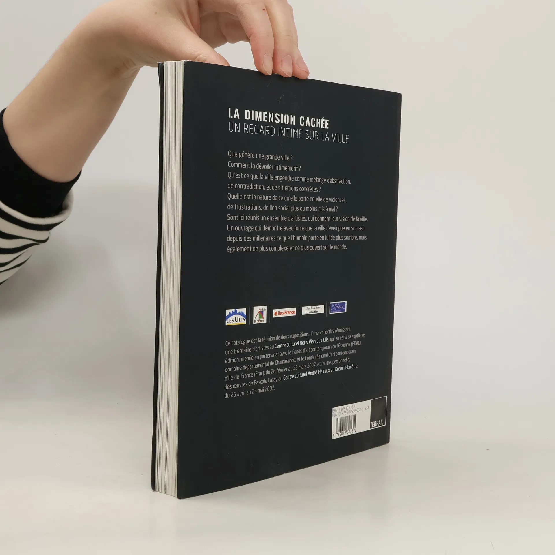 Que génère une grande ville ? Comment la dévoiler intimement ? Qu'est-ce que la ville engendre comme mélange d'abstraction, de contradiction et de situations concrètes ? Quelle est la nature de ce qu'elle porte en elle de violences, de frustrations, de lien social plus ou moins mis à mal ? Sont ici réunis un ensemble d'artistes qui donnent leur vision de la ville. Un ouvrage qui démontre avec force que la ville développe en son sein depuis des millénaires ce que l'humain porte en lui de plus sombre, mais également de plus complexe et de plus ouvert sur le monde. Ce catalogue est la réunion de deux expositions : l'une, collective réunissant une trentaire d'artistes au Centre culturel Boris Vian aux Ulis du 26 février au 25 mars 2007, et l'autre, personnelle, des œuvres de Pascale Lafay au Centre culturel André Malraux au Kremlin-Bicêtre du 26 avril au 25 mai 2007.
