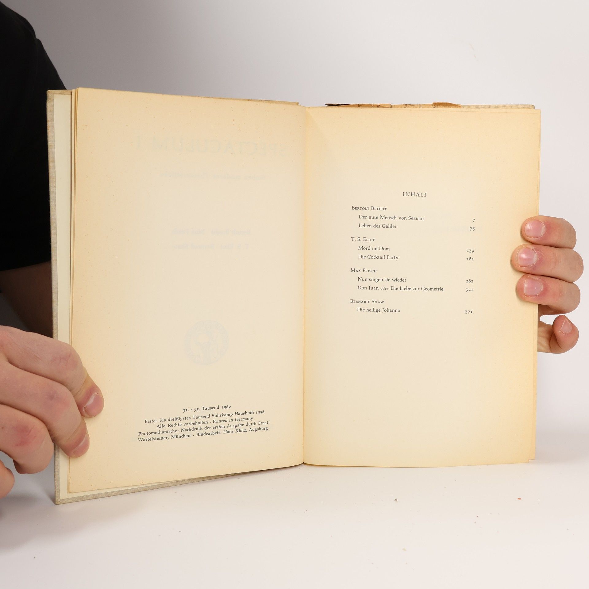 Spectaculum I., Bertolt Brecht, T. S. Eliot, Max Frisch, George Bernard Shaw