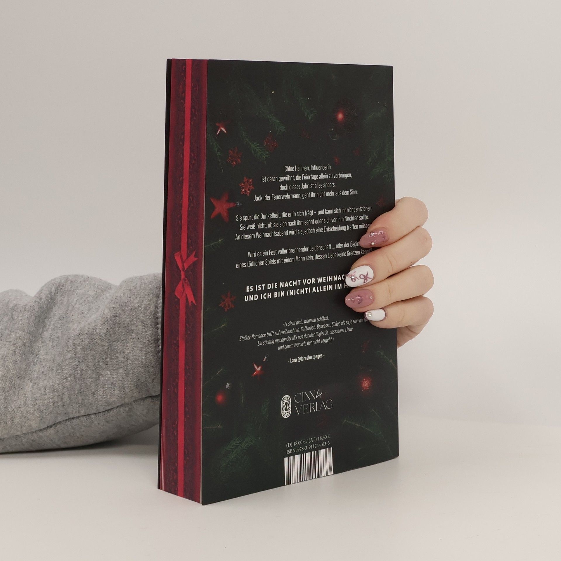 Ich kenne sie besser, als sie sich selbst kennt. Ihre tiefsten Geheimnisse, ihre verborgensten Sehnsüchte. Sie weiß es nicht, doch ich beobachte sie – ohne je Fußspuren im Schnee vor ihrem Haus zu hinterlassen. Chloe Hallman, Influencerin, ist daran gewöhnt, die Feiertage allein zu verbringen, doch dieses Jahr ist alles anders. Jack, der Feuerwehrmann, geht ihr nicht mehr aus dem Sinn. Sie spürt die Dunkelheit, die er in sich trägt – und kann sich ihr nicht entziehen. Sie weiß nicht, ob sie sich nach ihm sehnt oder sich vor ihm fürchten sollte. An diesem Weihnachtsabend wird sie jedoch eine Entscheidung treffen müssen. Wird es ein Fest voller brennender Leidenschaft … oder der Beginn eines tödlichen Spiels mit einem Mann sein, dessen Liebe keine Grenzen kennt? Es ist die Nacht vor Weihnachten, und ich bin (nicht) allein im Haus... Eine erfolgreiche Influencerin und ein obsessiver Feuerwehrmann in der besinnlichsten Zeit des Jahres. Er entdeckt ihr dunkles Geheimnis, doch ist er ihr Retter, oder aber das Monster? - Für Fans von Morgan Bridges. - Veredelte Klappenbroschur - Illustration in der Klappe - Mit Farbschnitt in der ersten Auflage Dieses Buch gibt es in zwei Ausstattungen. Mit und ohne Farbschnitt. Leider können wir keinen Farbschnitt garantieren.