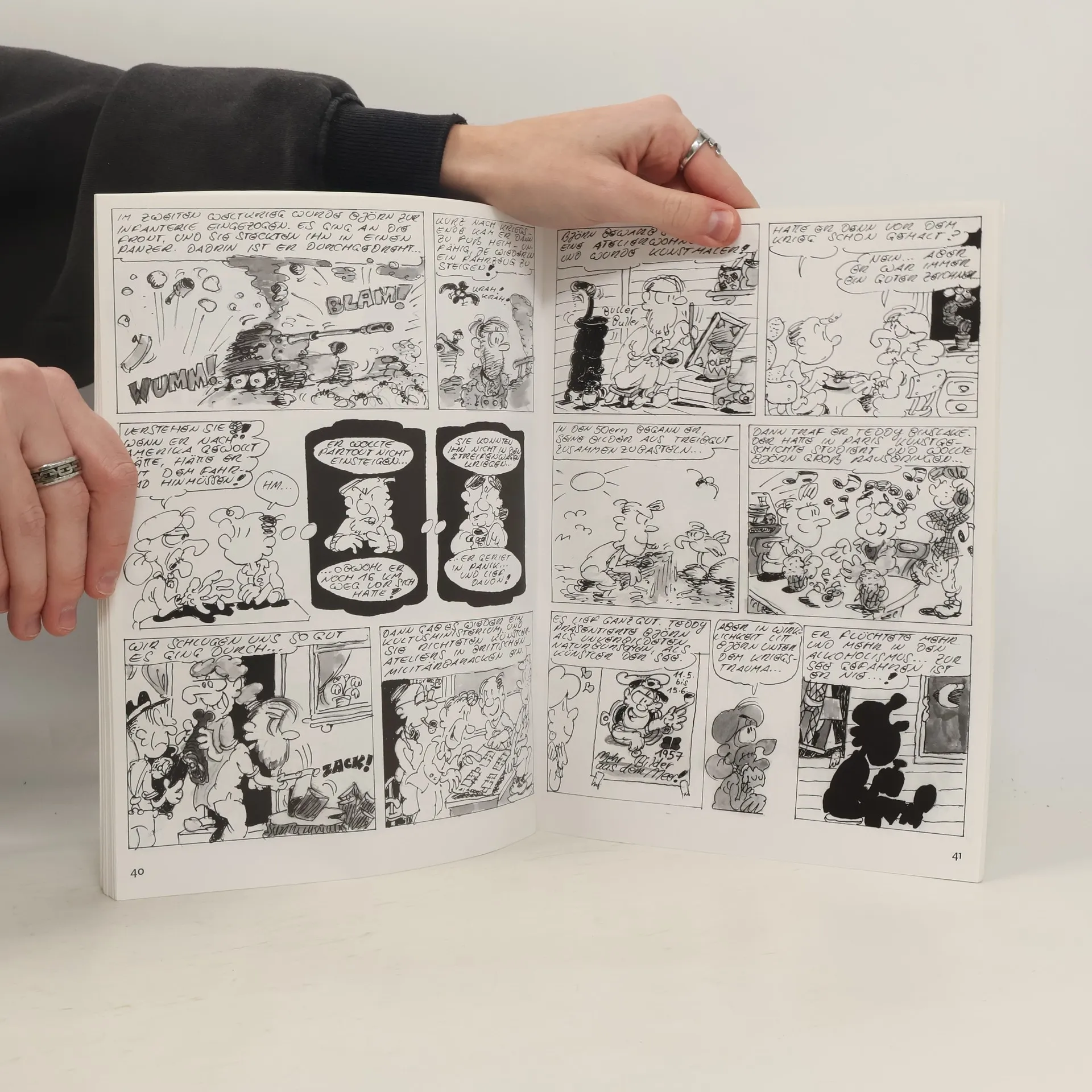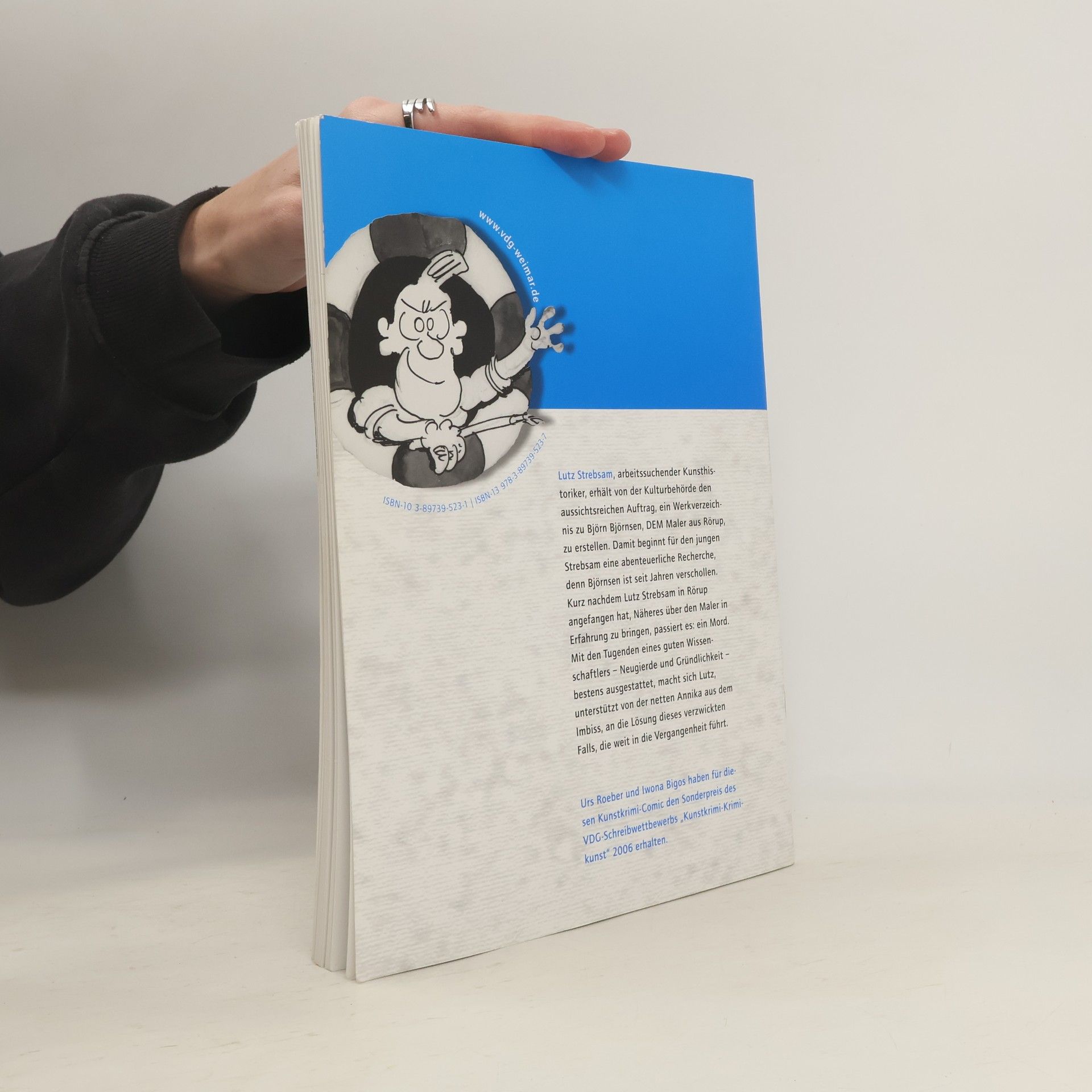 Lutz Strebsam, arbeitssuchender Kunsthistoriker, erhält von der Kulturbehörde den aussichtsreichen Auftrag, ein Werkverzeichnis zu Björn Björnsen, DEM Maler aus Rörup, zu erstellen. Damit beginnt für den jungen Strebsam eine abenteuerliche Recherche, denn Björnsen ist seit Jahren verschollen. Kurz nachdem Lutz Strebsam in Rörup angefangen hat, Näheres über den Maler in Erfahrung zu bringen, passiert es: ein Mord. Mit den Tugenden eines guten Wissenschaftlers - Neugierde und Gründlichkeit - bestens ausgestattet, macht sich Lutz, unterstützt von der netten Annika aus dem Imbiss, an die Lösung dieses verzwickten Falls, die weit in die Vergangenheit führt. Urs Roeber und Iwona Bigos haben für diesen Kunstkrimi-Comic den Sonderpreis des VDG-Schreibwettbewerbs “Kunstkrimi-Krimikunst” 2006 erhalten.