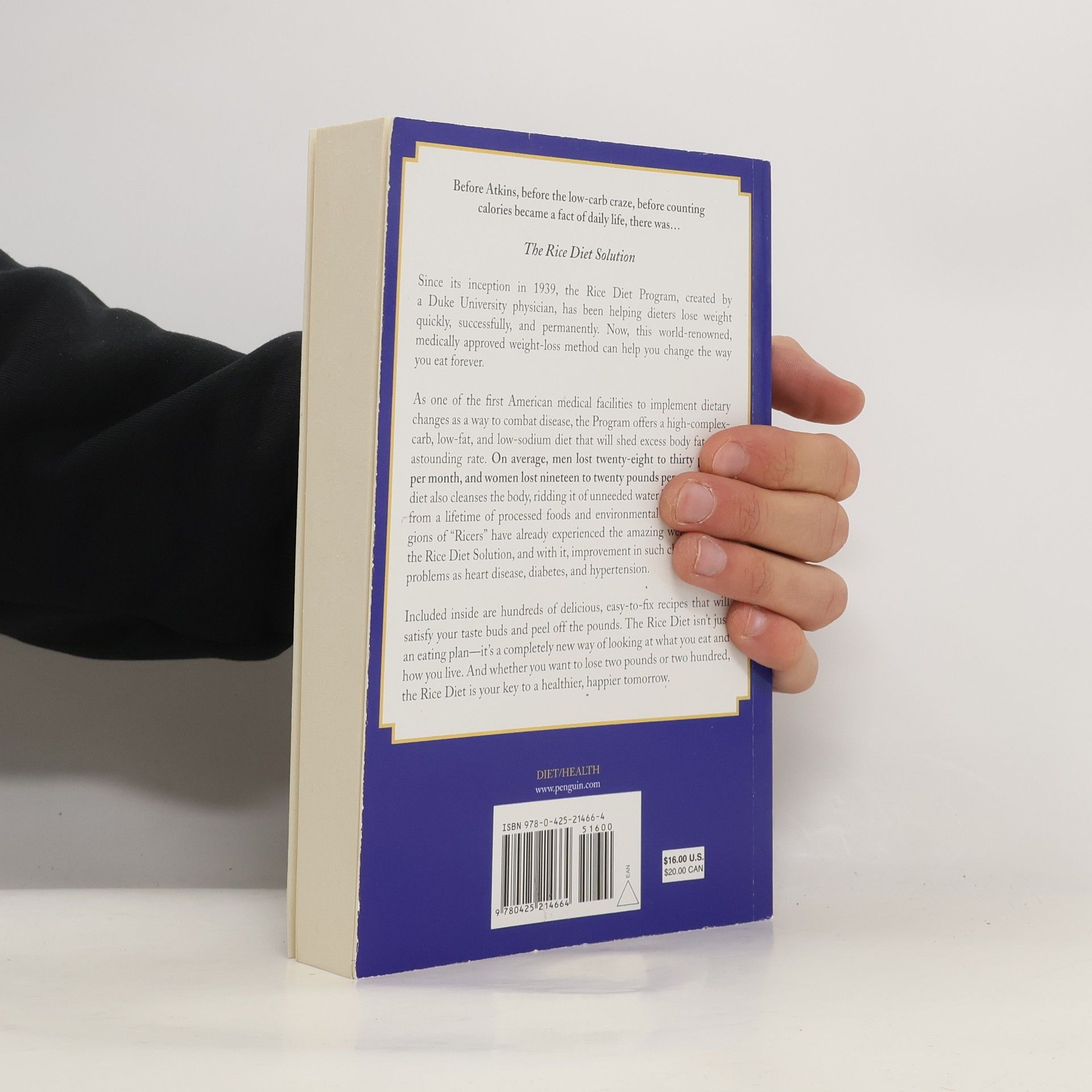 The <i>New York Times</i> bestseller. Before Atkins, before the low-carb craze, before counting calories, there was the Rice Diet Program. Founded by a pioneering Duke University physician in 1939, the Rice Diet Program has been helping dieters lose weight quickly, successfully, and permanently. Now, this world-renowned, medicallyapproved weight-loss method can help everyone across the world--and not just those who travel to Durham, North Carolina. The Program offers a high-complex-carb, low-fat, and low-sodium diet that sheds excess body fat at an astounding rate. On average, men lost <i>28 to 30 pounds</i> per month, and women lost 19 to <i>20 pounds</i> per month. The diet also cleanses the body of water bloat and toxins, and has been seen to help with such chronic health problems as heart disease, diabetes, and hypertension. Included are hundreds of delicious, easy-to-fix recipes.