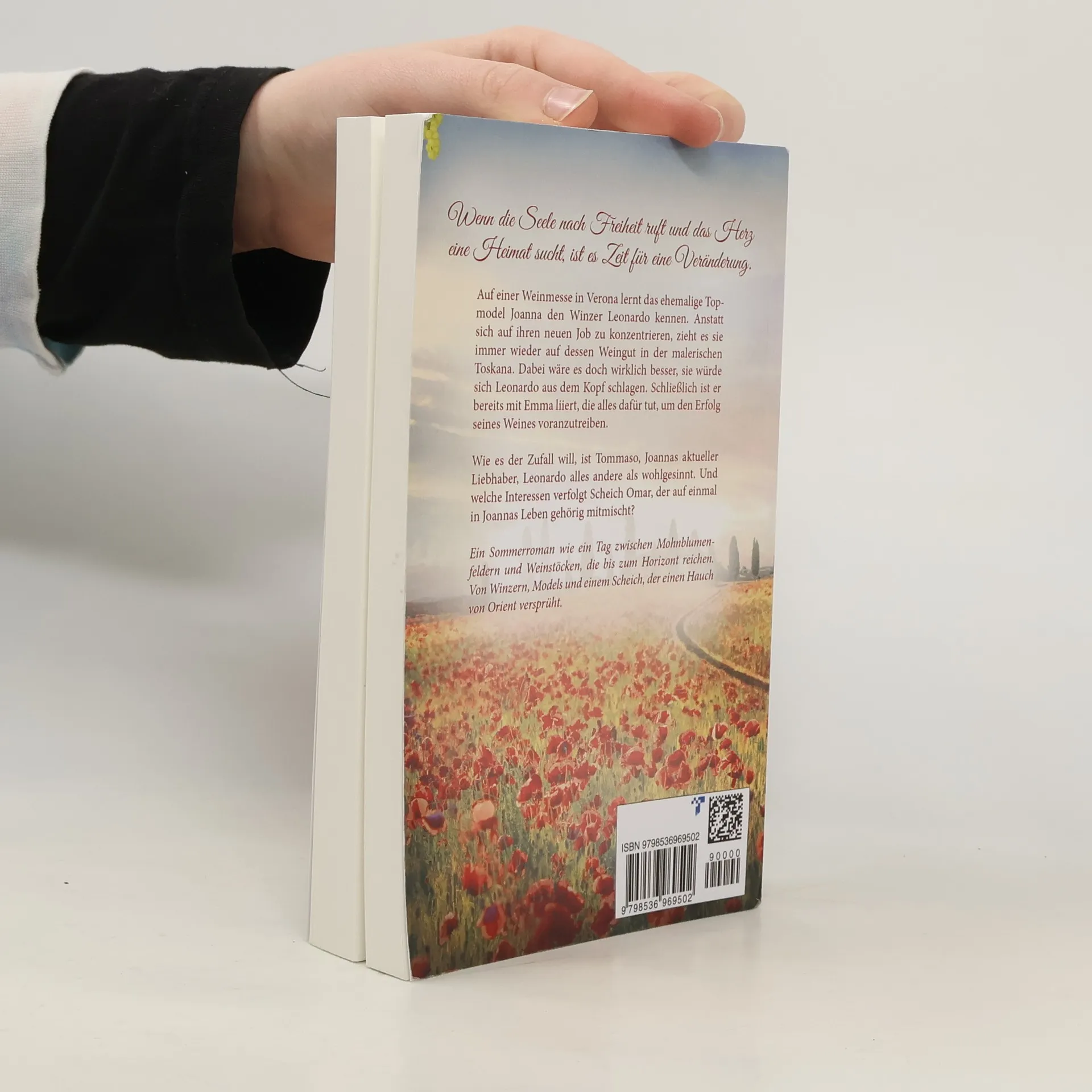 Wenn die Seele nach Freiheit ruft und das Herz eine Heimat sucht, ist es Zeit für eine Veränderung. Auf einer Weinmesse in Verona lernt das ehemalige Topmodel Joanna den Winzer Leonardo kennen. Anstatt sich auf ihren neuen Job zu konzentrieren, zieht es sie immer wieder auf dessen Weingut in der malerischen Toskana. Dabei wäre es doch wirklich besser, sie würde sich Leonardo aus dem Kopf schlagen. Schließlich ist er bereits mit Emma liiert, die alles dafür tut, um den Erfolg seines Weines voranzutreiben. Wie es der Zufall will, ist Tommaso, Joannas aktueller Liebhaber, Leonardo alles andere als wohlgesinnt. Und welche Interessen verfolgt Scheich Omar, der auf einmal in Joannas Leben gehörig mitmischt? Ein Sommerroman wie ein Tag zwischen Mohnblumenfeldern und Weinstöcken, die bis zum Horizont reichen. Von Winzern, Models und einem Scheich, der einen Hauch von Orient versprüht.