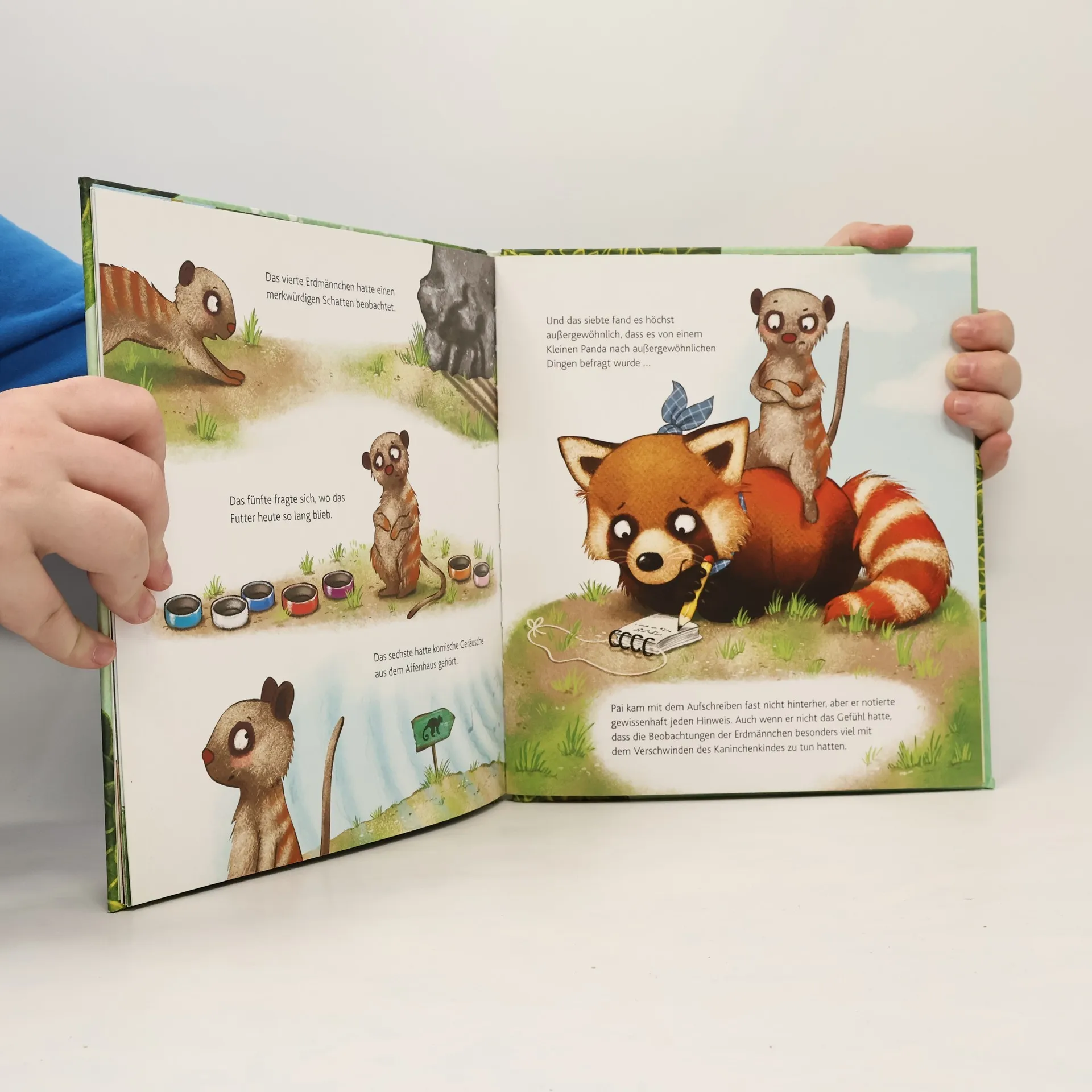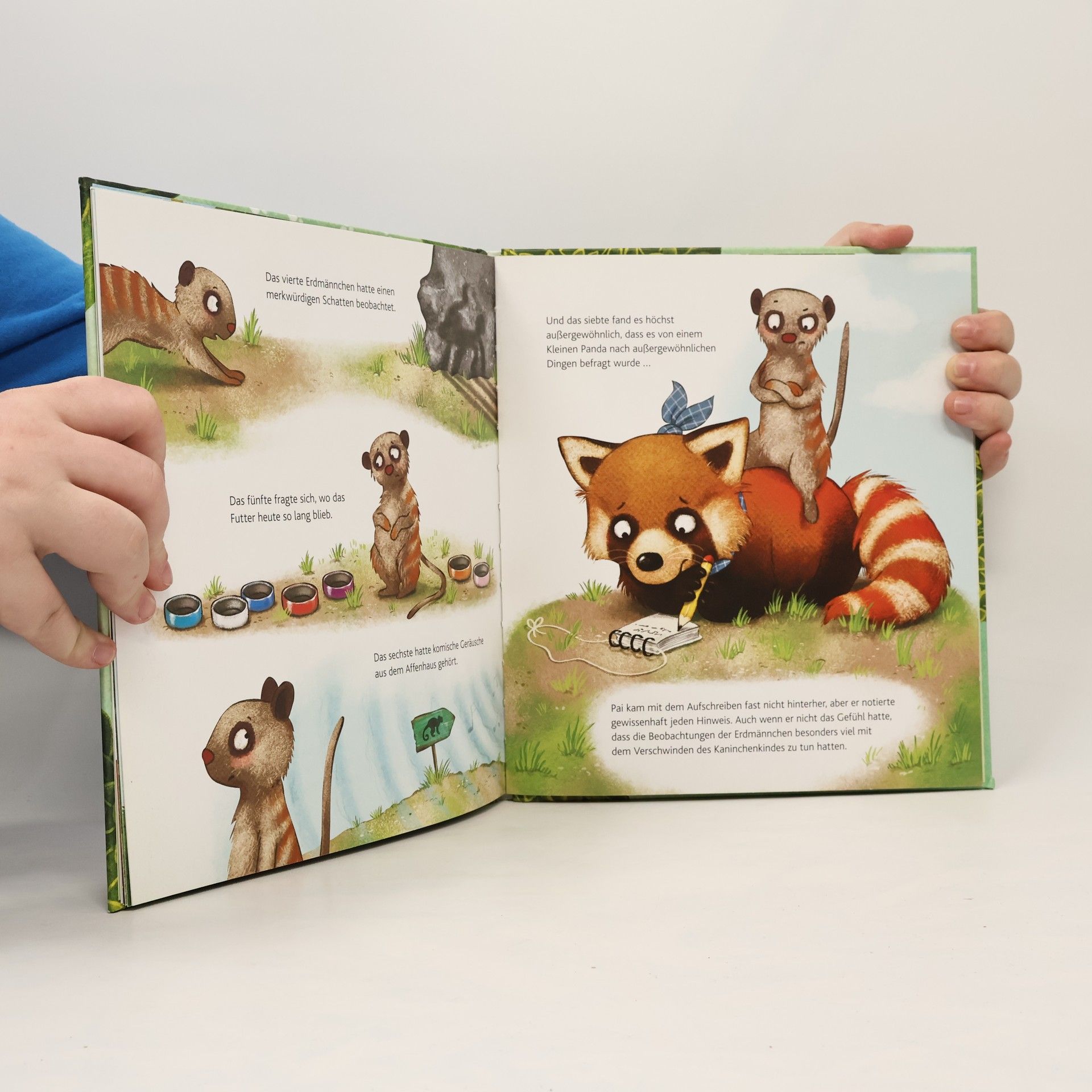 Die Tiere im Wildpark sind in Aufruhr: Das zehnte Kaninchen baby ist verschwunden! Wanda Waschbär ist mit ihrem Detektiv-Notdienst sofort zur Stelle. Und weil es so viele Zeugen gibt, springt der Kleine Panda Pai kurzerhand als Notdienst-Assistent ein. Er fragt nach besonderen Vorkommnissen, kombiniert und hält die Augen offen. Nur leider wollen alle etwas Außergewöhnliches bemerkt haben – und das Augen-Offenhalten gestaltet sich auch schwieriger als gedacht, denn eigentlich wäre es höchste Zeit für seinen Mittagsschlaf. Wird Kleiner Panda Pai das Rätsel um Kaninchen Nummer zehn trotzdem lösen können? Hier kommt Kleiner Panda Pai , der neue Held im Bilderbuch ! Der süße Rote Panda (auch Katzenbär genannt) spielt die Hauptrolle in der Reihe für Kinder ab 3 Jahren und nimmt sie in jedem Band mit in seine Welt. Dabei werden Themen wie Freundschaft , Hilfsbereitschaft und Mut auf charmante Weise transportiert – wunderbar geeignet für kuschelige, aber auch aufregende Vorlesestunden!