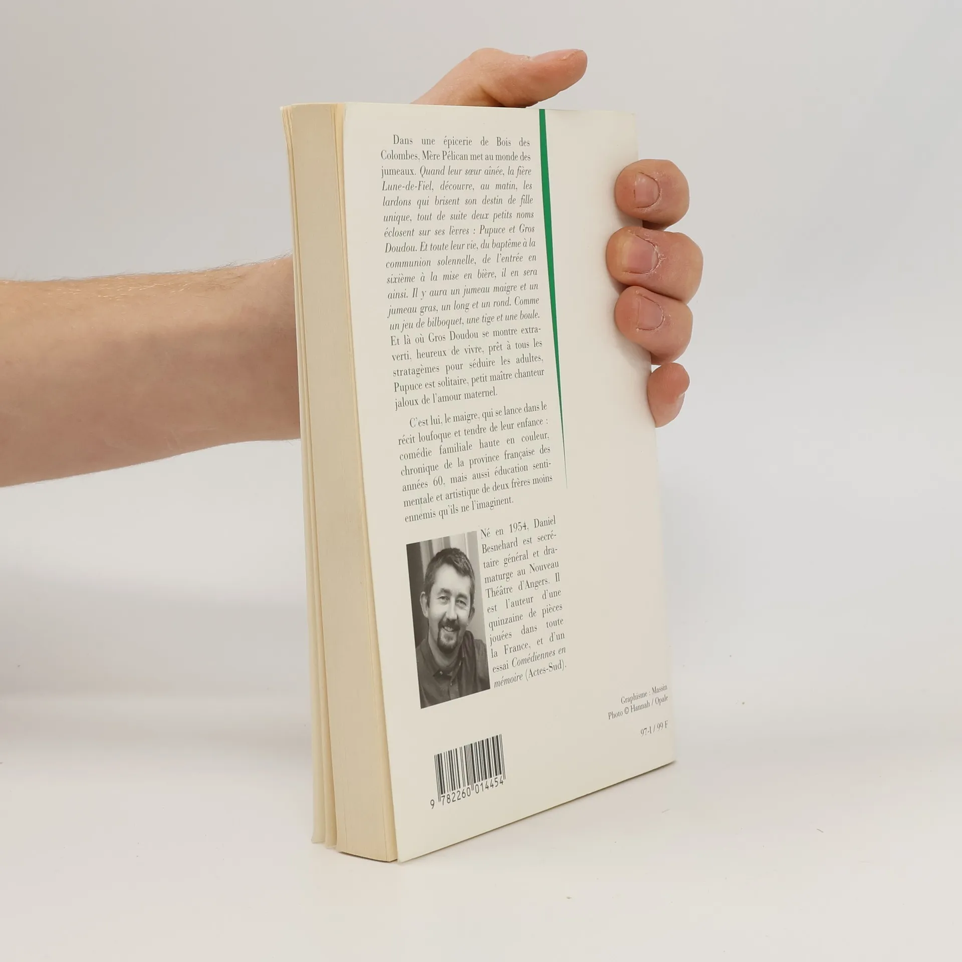 Dans une épicerie de Bois des Colombes, Mère Pélican met au monde des jumeaux. Quand leur sœur aînée, la fière Lune-de-Fiel, découvre, au matin, les lardons qui brisent son destin de jeune fille unique, tout de suite deux petits noms éclosent sur ses lèvres : Pupuce et Gros Doudou. Et toute leur vie, du baptême à la communion solennelle, de l'entrée en sixième à la mise en bière, il en sera ainsi. Il y aura un jumeau maigre et un jumeau gras, un long et un rond. Comme un jeu de bilboquet, une tige et une boule . Et là où Gros Doudou se montre extraverti, heureux de vivre, prêt à tous les stratagèmes pour séduire les adultes, Pupuce est solitaire, petit maître chanteur jaloux de l'amour maternel.C'est lui, le maigre, qui se lance dans le récit loufoque de leur enfance : comédie familiale haute en couleur, chronique de la province française des années 60, mais aussi éducation sentimentale et artistique de deux frères moins ennemis qu'ils ne l'imaginaient.