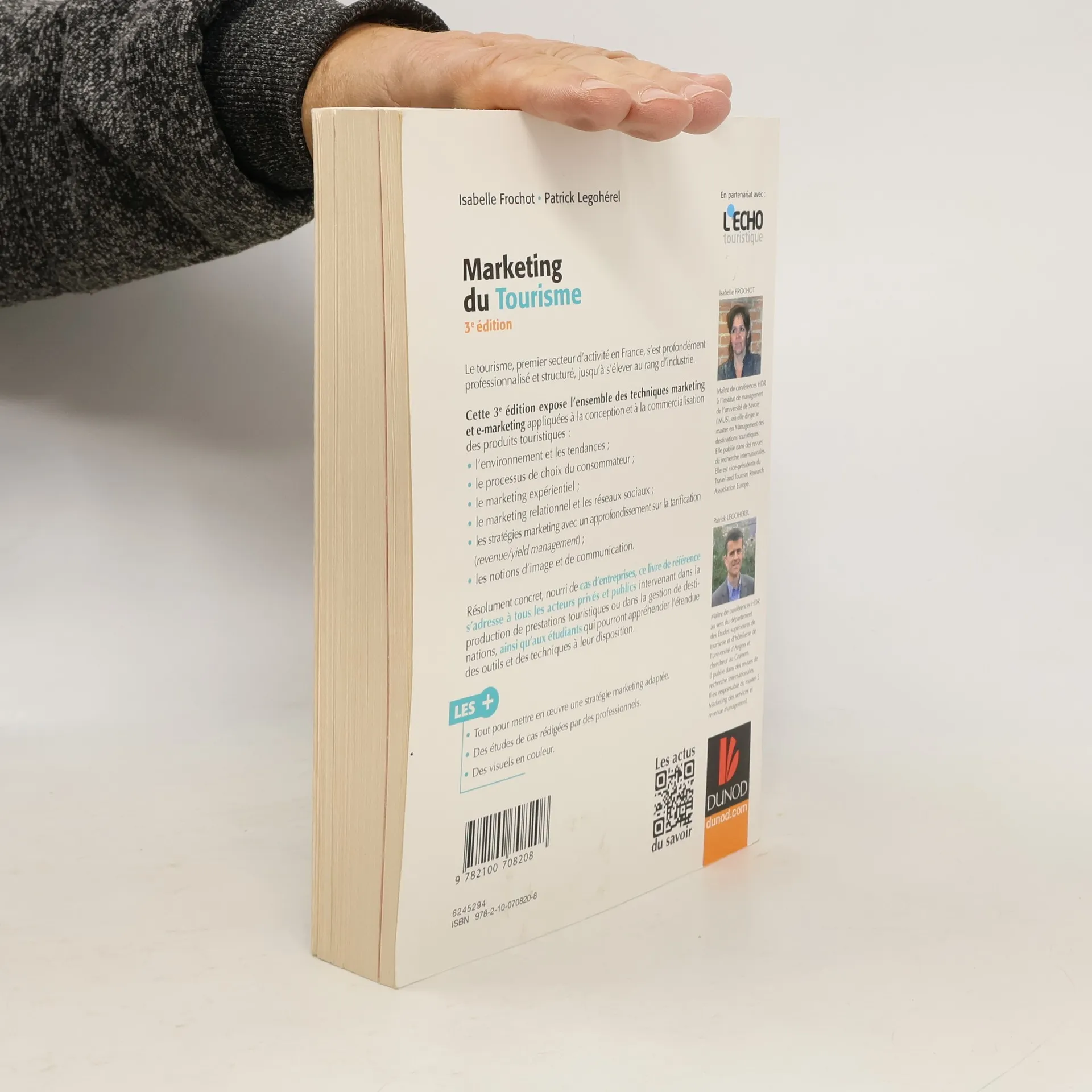 Le tourisme, premier secteur d'activite en France, s'est profondement professionnalise et structure, jusqu'a s'elever au rang d'industrie. Cette 3e edition expose l'ensemble des techniques marketing et e-marketing appliquees a la conception et a la commercialisation des produits touristiques: - l'environnement et les tendances; - le processus de choix du consommateur; - le marketing experientiel; - le marketing relationnel et les reseaux sociaux; - les strategies marketing avec un approfondissement sur la tarification ( revenue/yield management ); - les notions d'image et de communication. Resolument concret, nourri de cas d'entreprises, ce livre de reference s'adresse a tous les acteurs prives et publics intervenant dans la production de prestations touristiques ou dans la gestion de destinations, ainsi qu'aux etudiants qui pourront apprehender l'etendue des outils et des techniques a leur disposition.