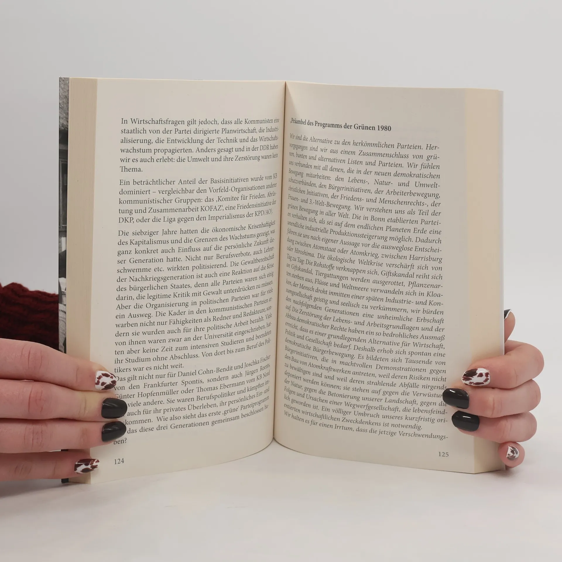 1970 endete das ‚Wirtschaftswunder‘, die ‚nivellierte Mittelstandsgesellschaft‘ der CDU/CSU/FDP wurde Illusion, Krisen mit Arbeitslosigkeit kehrten zurück. Die SPD startete Projekte für gigantische Industrieansiedlung und rabiate Stadterneuerung. Die ‚Grenzen des Wachstums‘ wurden in Rom diskutiert, frühe Sozialisten wurden publiziert (Fourier, Marx, Landauer, Mühsam ...), die seit 200 Jahren die Ökologie zum kritischen Thema der kapitalistischen Industrialisierung gemacht hatten. Ökologische Politiker verließen zuerst CSU und CDU, dann auch die SPD, als diese mit Berufsverboten und Polizeigewalt gegen Widerstand vorging. Eine breite basisdemokratische Bewegung entstand. 1980 gründeten drei Generationen die ‚Grünen‘. Die Älteren hatten den Krieg mitgemacht und in den 50er Jahren die Friedensbewegung angeführt. Die Mittleren hatten die antiautoritäre Bewegung der ‚68er‘ losgetreten. Die Jüngeren kämpften für eine kommunistische Gesellschaft. Als Erste wurden die Ökologen ausgegrenzt, als zweite die Basisdemokraten, als Letzte die Kriegsgegner. Diesen historischen Prozess und seine Folgen beschreibt der Autor und entwirft dann ein Konzept für den Neubeginn der ‚Grünen‘.