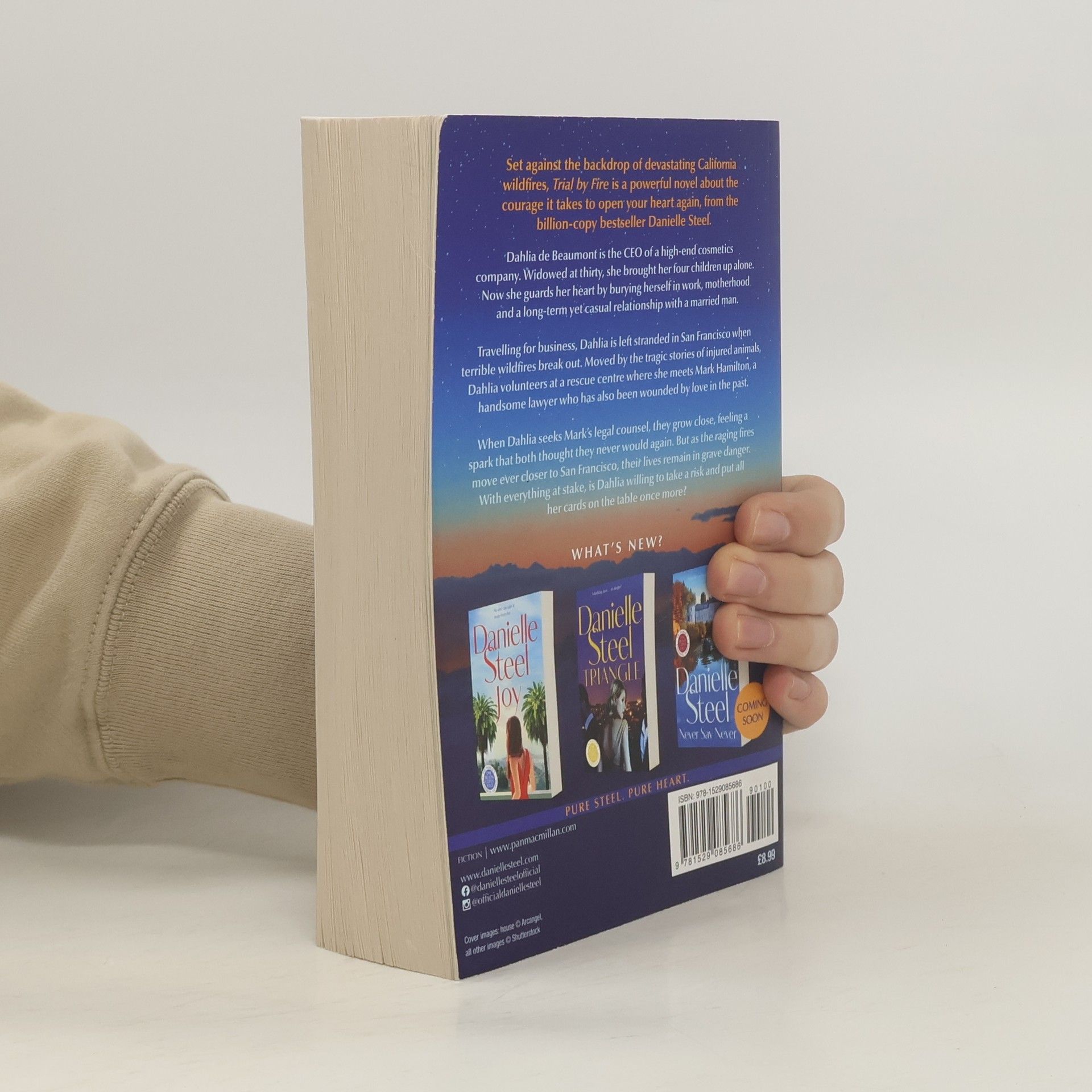 Set against the backdrop of devastating California wildfires, Trial by Fire is a powerful novel about the courage it takes to open your heart again, from the billion-copy bestseller Danielle Steel. Dahlia de Beaumont is the CEO of a high-end perfume and cosmetics company based in Paris. Cruelly widowed at thirty, she brought her four children up alone. Now aged fifty, she guards her heart by burying herself in work, motherhood, and a long-term yet casual relationship with a married man. Travelling for business, Dahlia is left stranded in San Francisco when terrible wildfires break out, causing widespread death and destruction. Moved by the tragic stories of injured animals, Dahlia volunteers at a pet rescue centre in Napa Valley, where she meets Mark Hamilton, a handsome lawyer who has also been wounded by love in the past. When Dahlia seeks Mark's legal counsel, they grow close, feeling a spark that both thought they never would again. But as black smoke fills the air, and the raging fires move ever closer to San Francisco, their lives remain in grave danger. With everything at stake, is Dahlia willing to take a risk, and put all her cards on the table once more?