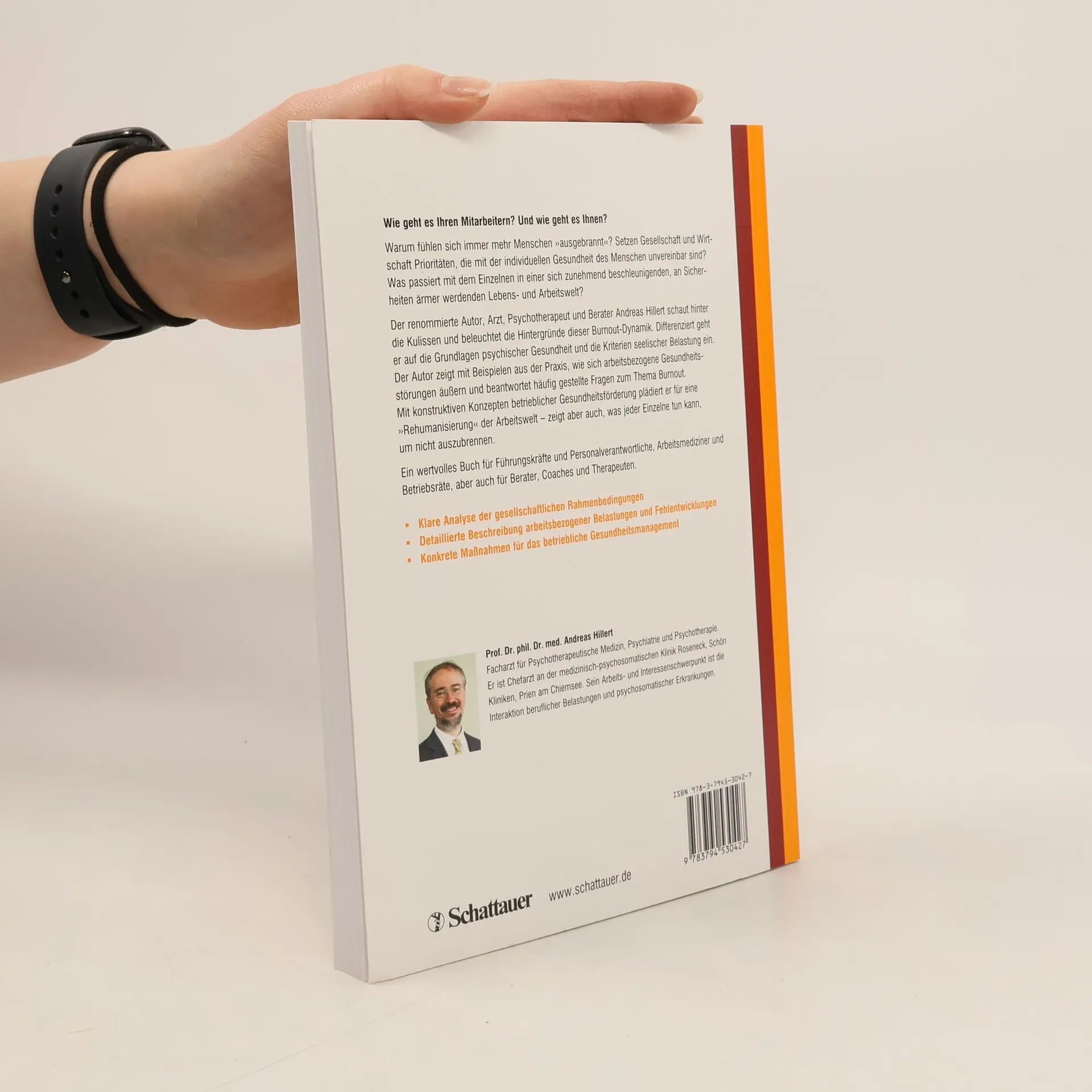 Wie geht es Ihren Mitarbeitern? Und wie geht es Ihnen? Warum fühlen sich immer mehr Menschen „ausgebrannt“? Setzen Gesellschaft und Wirtschaft Prioritäten, die mit der individuellen Gesundheit des Menschen unvereinbar sind? Was passiert mit dem Einzelnen in einer sich zunehmend beschleunigenden, an Sicherheiten ärmer werdenden Lebens- und Arbeitswelt? Der renommierte Autor, Psychotherapeut und Berater Andreas Hillert schaut hinter die Kulissen und beleuchtet die Hintergründe dieser Burnout-Dynamik. Differenziert geht er auf die Grundlagen psychischer Gesundheit und die Kriterien seelischer Belastung ein. Mit Beispielen aus der Praxis zeigt der Autor, wie sich arbeitsbezogene Gesundheitsstörungen äußern. Ein detaillierter Fragenkatalog liefert konkrete Hinweise, um z. B. eine Burnout-Gefährdung zu erkennen. Mit konstruktiven Konzepten betrieblicher Gesundheitsförderung plädiert der Autor für eine „Rehumanisierung“ der Arbeitswelt – er zeigt aber auch, was jeder Einzelne tun kann, um nicht auszubrennen. Ein wertvolles Buch für Führungskräfte und Personalverantwortliche, Arbeitsmediziner und Betriebsräte, aber auch für Berater, Coachs und Therapeuten. KEYWORDS: Burnout, Arbeitswelt, seelische Gesundheit, psychische Bealstung, betriebliches Gesundheitsmanagement, individuelle Vorsorge