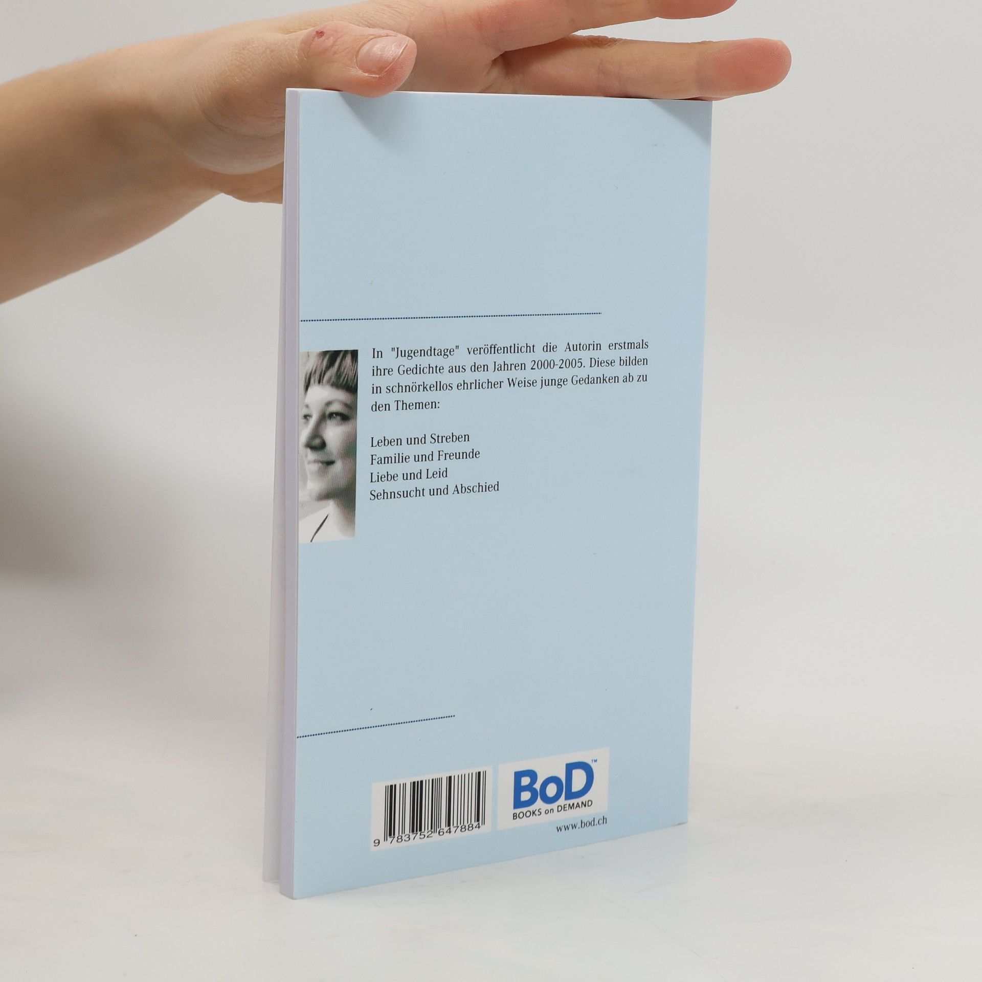 In "Jugendtage" präsentiert die Autorin erstmals ihre Gedichte aus den Jahren 2000-2005, die auf ehrliche Weise junge Gedanken zu den Themen Leben, Familie, Liebe, Sehnsucht und Abschied reflektieren.