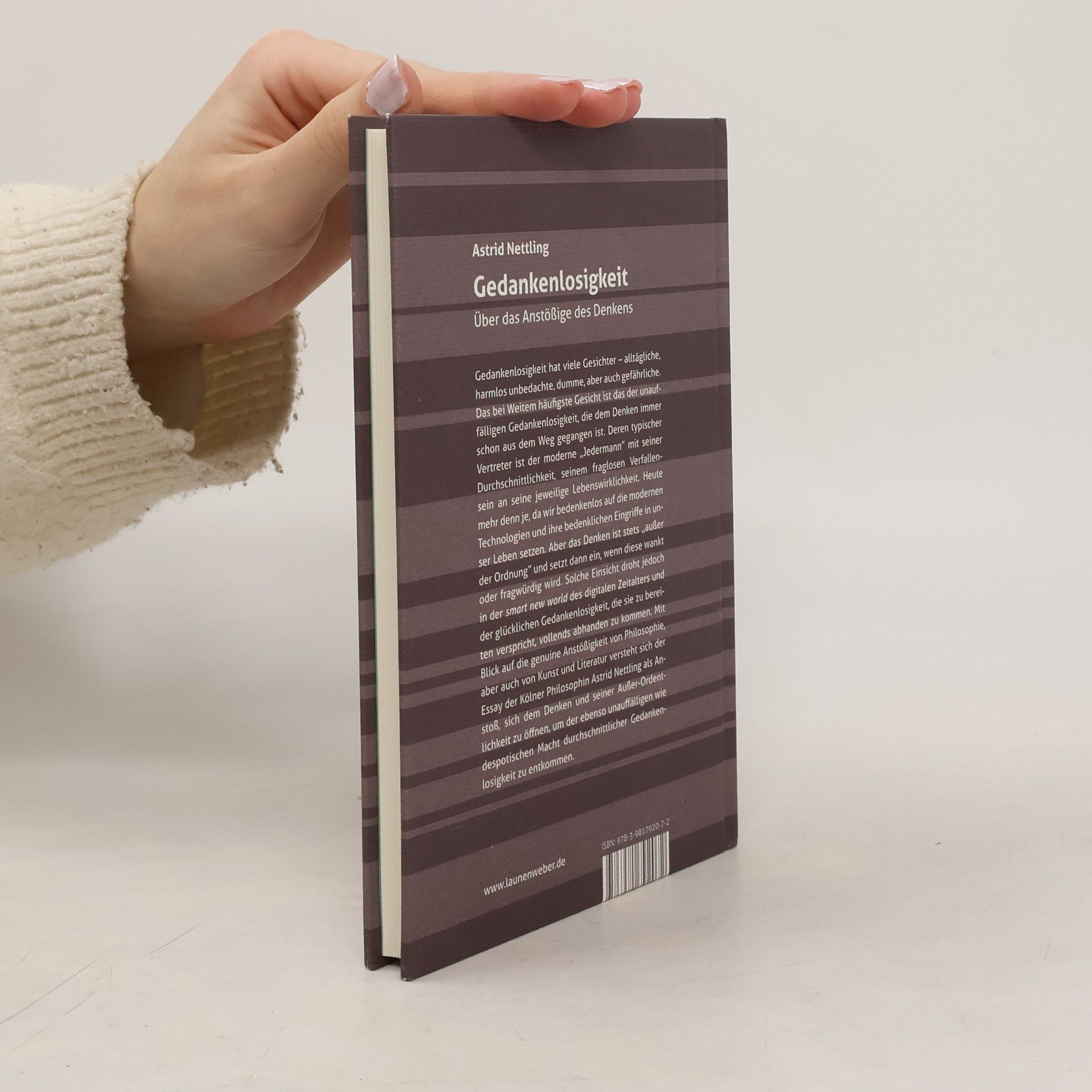 Gedankenlosigkeit hat viele Gesichter – alltägliche, harmlos unbedachte, dumme, aber auch gefährliche. Das bei Weitem häufigste Gesicht ist das der unauffälligen Gedankenlosigkeit, die dem Denken immer schon aus dem Weg gegangen ist. Deren typischer Vertreter ist der moderne „Jedermann” mit seiner Durchschnittlichkeit, seinem fraglosen Verfallensein an seine jeweilige Lebenswirklichkeit. Heute mehr denn je, da wir bedenkenlos auf die modernen Technologien und ihre bedenklichen Eingriffe in unser Leben setzen. Aber das Denken ist stets „außer der Ordnung” und setzt dann ein, wenn diese wankt oder fragwürdig wird. Solche Einsicht droht jedoch in der „smart new world“ des digitalen Zeitalters und der glücklichen Gedankenlosigkeit, die sie zu bereiten verspricht, vollends abhanden zu kommen. Mit Blick auf die genuine Anstößigkeit von Philosophie, aber auch von Kunst und Literatur versteht sich der Essay der Kölner Philosophin Astrid Nettling als Anstoß, sich dem Denken und seiner Außer-Ordentlichkeit zu öffnen, um der ebenso unauffälligen wie despotischen Macht durchschnittlicher Gedankenlosigkeit zu entkommen.