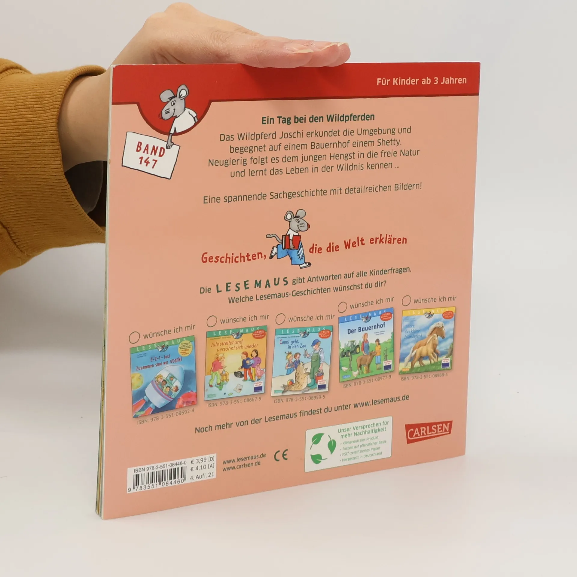 Das kleine Wildpferd Joschi sieht auf einem Bauernhof, wie die Pferde dort leben. Im Gegenzug zeigt es einem Shetland-Pony, wie die Wildpferde in der freien Natur zurechtkommen. Sachwissen für kleine Pferdefans in einer liebevoll erzählten Geschichte. LESEMAUS – Geschichten, die die Welt erklären! Die Bilderbücher für Kinder ab 3 Jahren sind ideal zum gemeinsamen Anschauen und Vorlesen. Verständliche Texte und hochwertige Illustrationen vermitteln erstes Sachwissen zu wichtigen Themen aus dem Kinderalltag. Empfohlen von der Stiftung Lesen.