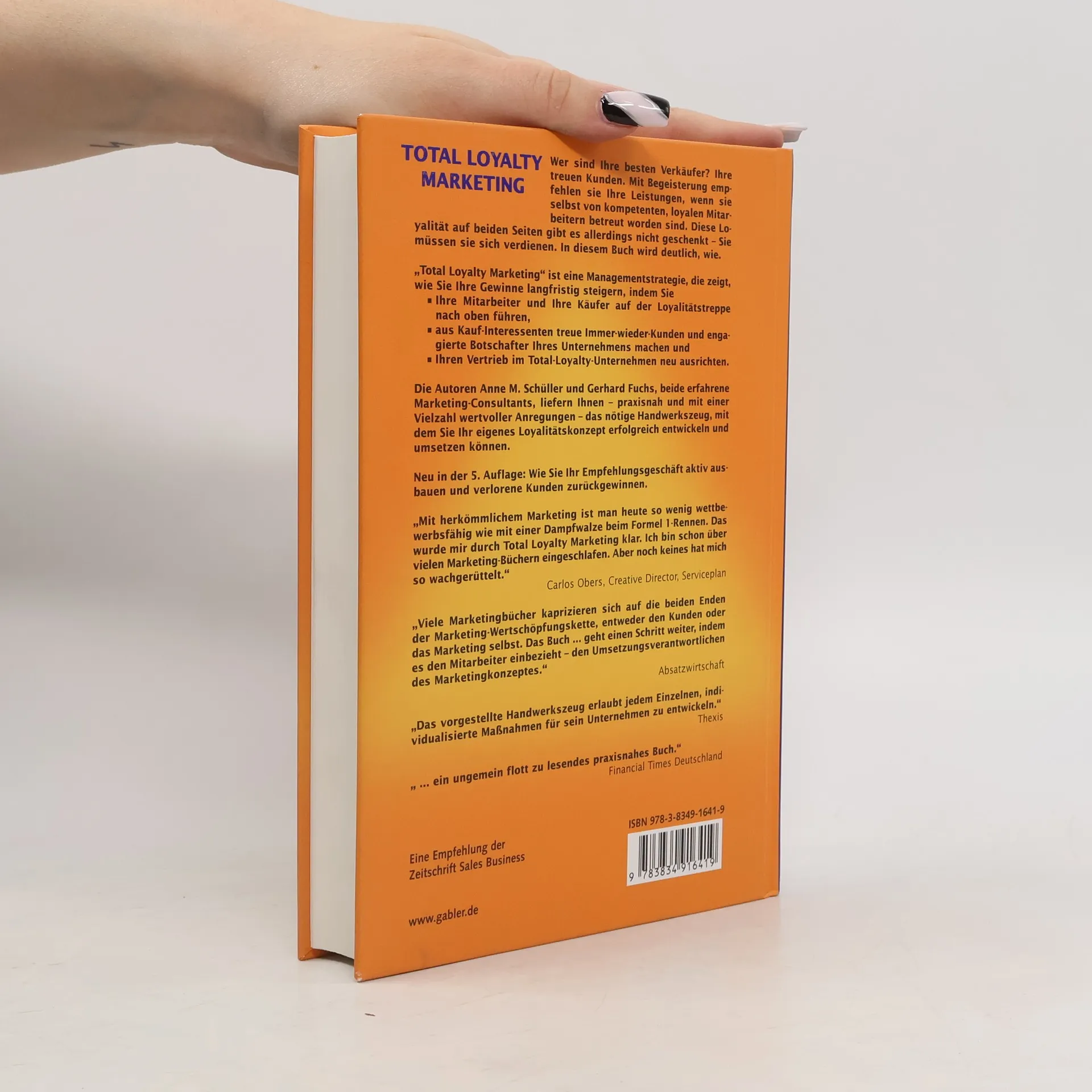 "Total Loyalty Marketing" ist eine Managementstrategie, die zeigt, wie Unternehmen ihre Gewinne langfristig steigern, indem sie ihre Mitarbeiter und ihre Käufer auf der Loyalitätstreppe nach oben führen, aus Kauf-Interessenten engagierte, aktive Botschafter ihres Unternehmens machen und ihren Vertrieb neu ausrichten. Die 5. Auflage wurde um die Themen Empfehlungsmarketing und Kundenrückgewinnung erweitert und ist aktueller denn je.