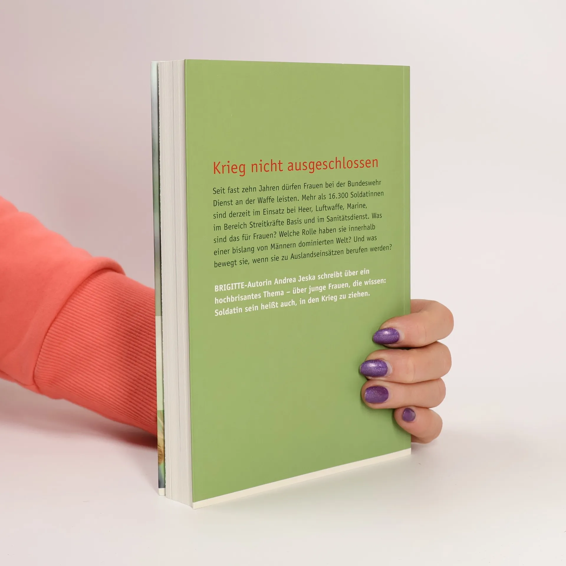 'Wer drei Stunden vor dem Spiegel braucht, hat bei der Bundeswehr nichts zu suchen.' Seit fast zehn Jahren dürfen Frauen bei der Bundeswehr Dienst an der Waffe leisten. Mehr als 16.300 Soldatinnen sind derzeit im Einsatz bei Heer, Luftwaffe, Marine, im Bereich Streitkräfte Basis und im Sanitätsdienst. Was sind das für Frauen? Welche Rolle haben sie innerhalb einer bislang von Männern dominierten Welt? Und was bewegt sie, wenn sie zu Auslandseinsätzen berufen werden? BRIGITTE-Autorin Andrea Jeska schreibt über ein hochbrisantes Thema — über junge Frauen, die wissen: Soldatin sein heißt auch, in den Krieg zu ziehen. Für Hauptfeldwebel Sonja Cole, Ausbilderin beim III. Luftwaffenregiment, zählen Disziplin und Treue. Coles Erwartungen orientieren sich an dem, was sie selbst zu geben bereit ist, und das ist im Ernstfall alles. Die Bundeswehr ist schließlich kein Mädchenverein. Frauen, die sich für die Bundeswehr entscheiden, müssen an die Grenzen ihrer Leistungsfähigkeit gehen, manchmal besser als die Männer sein und gegen Vorurteile kämpfen. Hinzu kommt, dass die Bundeswehr heute de facto Krieg in Afghanistan führt und im Golf von Aden Piraten bekämpft, die ihrerseits schwer bewaffnet sind. Andrea Jeska hat Soldatinnen u. a. am Horn von Afrika in Aktion erlebt. 'Krieg nicht ausgeschlossen', das ist eine Entwicklung, die vielen Frauen zu schaffen macht. Erstmalig berichten Frauen in der Bundeswehr von ihren Einsätzen.