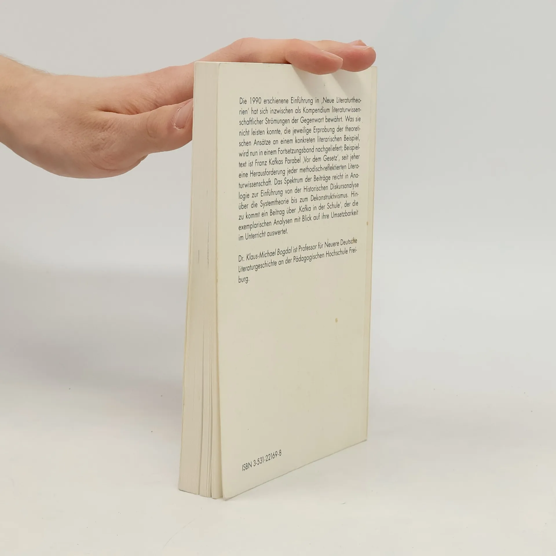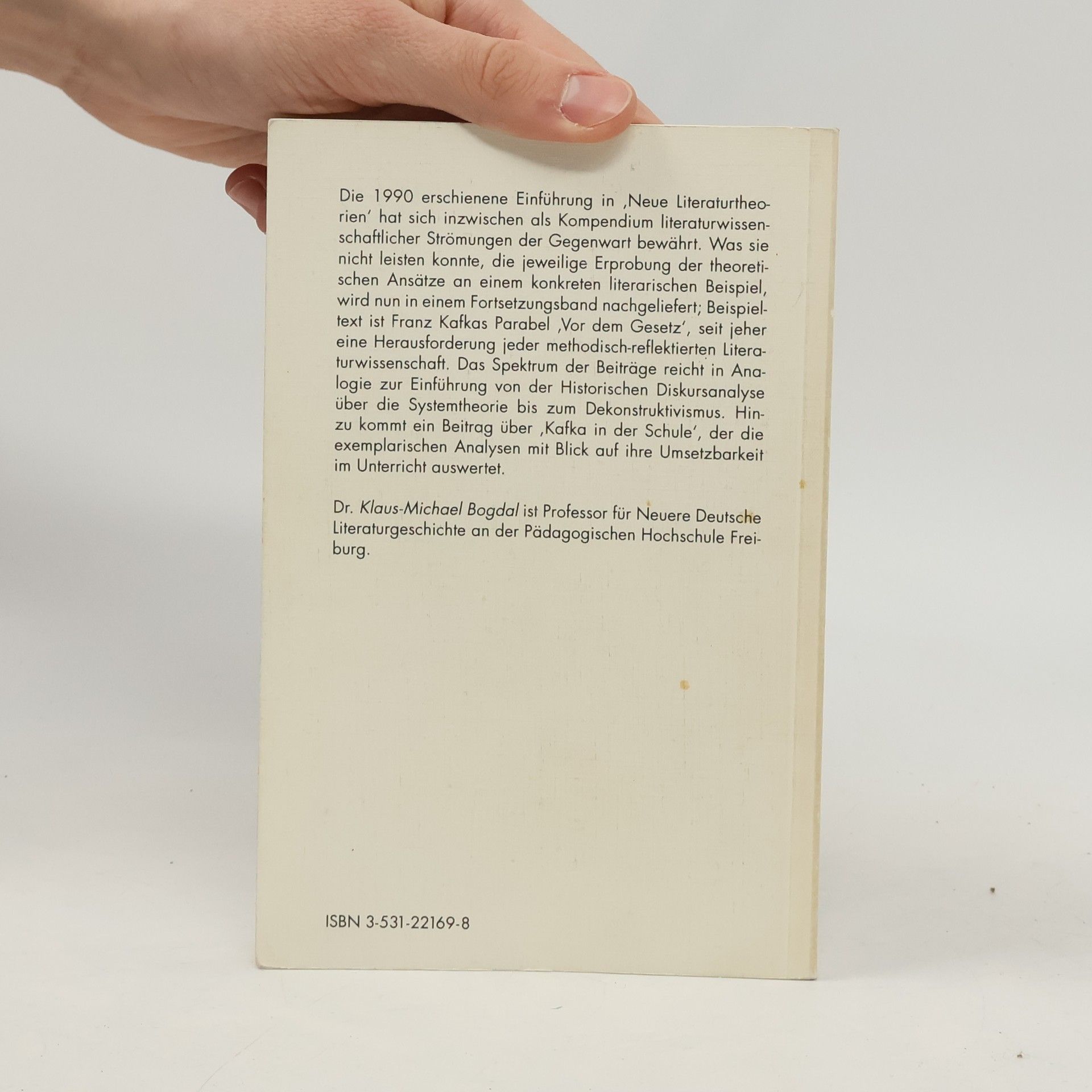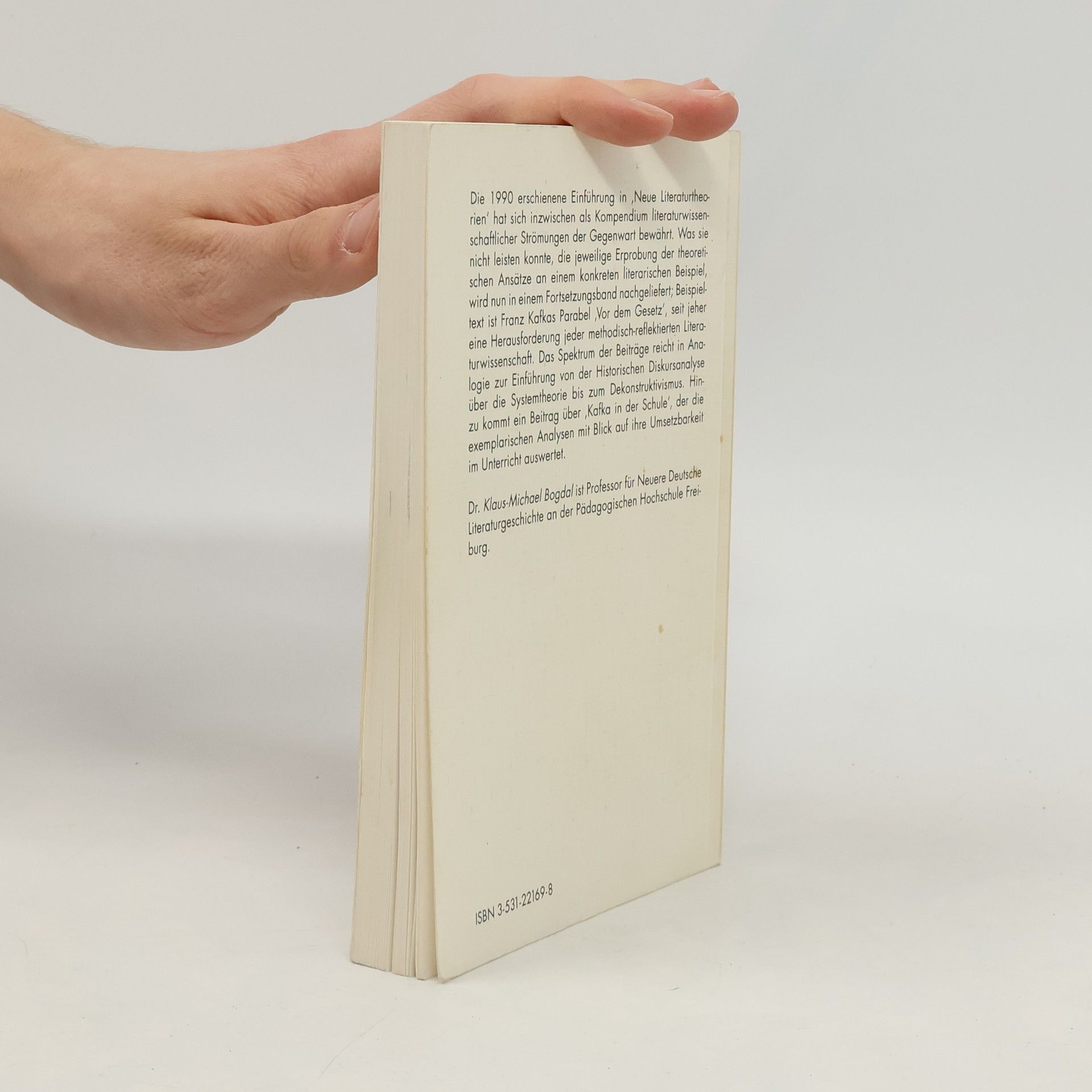 Der Fortsetzungsband der 1990 erstmals erschienenen, seither bewahrten Einfuhrung "Neue Literaturtheorien" zeigt die Erprobung der theoretischen Ansatze an jeweils einem konkreten literarischen Modell. Beispieltext ist Franz Kafkas Parabel "Vor dem Gesetz," die seit jeher eine Herausforderung jeder methodisch-reflektierten Literaturwissenschaft darstellt. Das Spektrum der Beitrage reicht in Analogie zur "Einfuhrung" von der Historischen Diskursanalyse uber die Systemtheorie bis zum Dekonstruktivismus."