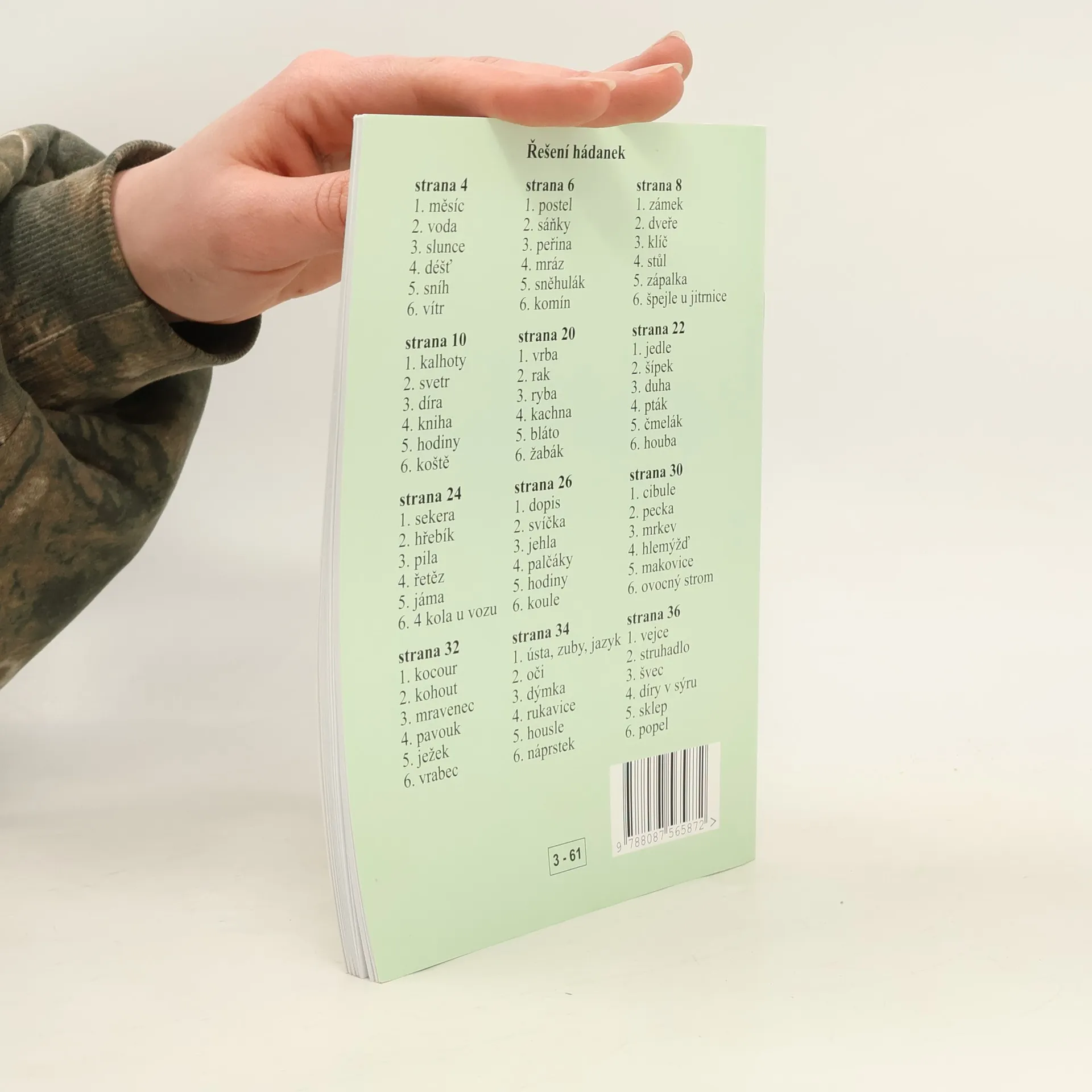 72 hádanek doplněných obrázky. Při řešení hádanek jsou žáci vedeni k zamyšlení se nad tím, který obrázek vyjadřuje řešení hádanky. Jedná se o velmi vhodný učební materiál k procvičení čtení s porozuměním. Nechybí ani hádanky, lidové pranostiky a popis některých lidových zvyků. NOVA361