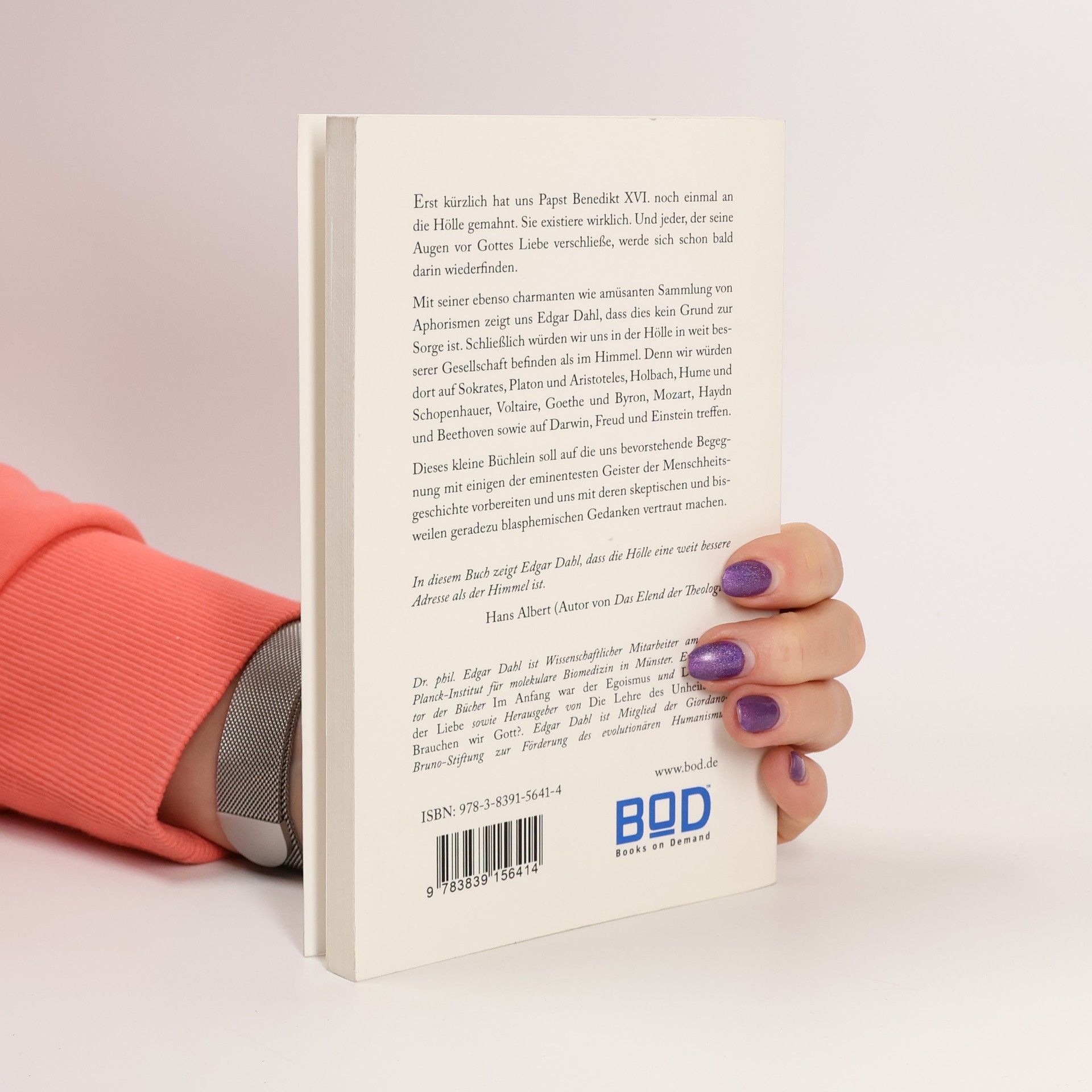 Erst kürzlich hat uns Papst Benedikt XVI. noch einmal an die Hölle gemahnt. Sie existiere wirklich. Und jeder, der seine Augen vor Gottes Liebe verschließe, werde sich schon bald darin wiederfinden. Mit seiner ebenso charmanten wie amüsanten Sammlung von Aphorismen zeigt uns Edgar Dahl, dass dies kein Grund zur Sorge ist. Schließlich würden wir uns in der Hölle in weit besserer Gesellschaft befinden als im Himmel. Denn wir würden dort auf Sokrates, Platon und Aristoteles, Holbach, Hume und Schopenhauer, Voltaire, Goethe und Byron, Mozart, Haydn und Beethoven sowie auf Darwin, Freud und Einstein treffen. Dieses kleine Büchlein soll auf die uns bevorstehende Begegnung mit einigen der eminentesten Geister der Menschheitsgeschichte vorbereiten und uns mit deren skeptischen und bisweilen geradezu blasphemischen Gedanken vertraut machen. In diesem Buch zeigt Edgar Dahl, dass die Hölle eine weit bessere Adresse als der Himmel ist. Hans Albert (Autor von "Das Elend der Theologie")