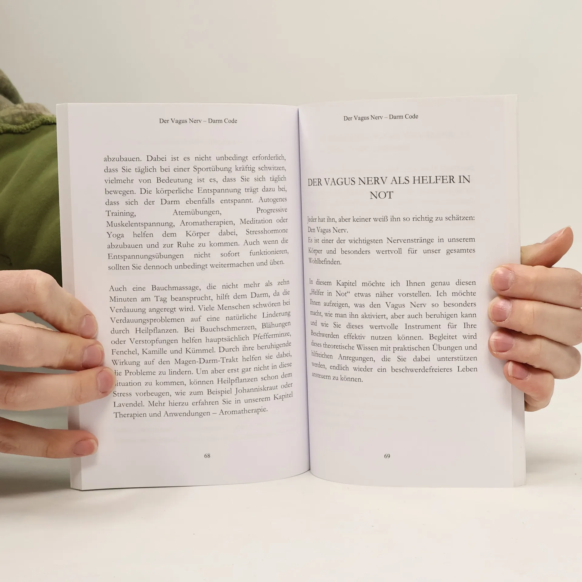 Wie Sie mithilfe des Selbstheilungsnervs Körper und Geist wieder in Einklang bringen!Finden Sie heraus wie sich der Vagus Nerv – Darm Code zusammensetzt und Sie Ihren Vagus Nerv für mehr Wohlbefinden und Darmgesundheit aktivieren können!Dieser Ratgeber baut auf wissenschaftlich fundierten Kenntnissen auf und vereinbart dieses Wissen mit praktischen Übungen , bewährten Techniken, Therapien und zahlreichen Beispielen die Sie - als Anfänger/in leicht in Ihren Alltag integrieren können. Lehrreich, praxisbezogen, kompakt und auf den Punkt gebracht.Dieses Buch wird Sie auf eine spannende Reise zu dem zweiten Gehirn des Menschen mitnehmen. Es erwarten Sie spannende Informationen zu folgenden Inklusive 20 Übungen & Aromatherapieplan für eine optimale Vagus Nerv-Meditation im Alltag! Die wichtigsten ätherischen Öle auf einem Blick!Profitieren Sie jetzt vom Vagus Nerv – Darm Code, sichern Sie sich Ihr persönliches Exemplar und starten Sie die Reise in ein Leben mit weniger Beschwerden, weniger Stress, mehr Wohlbefinden, mehr Gelassenheit und emotionaler Stabilität.